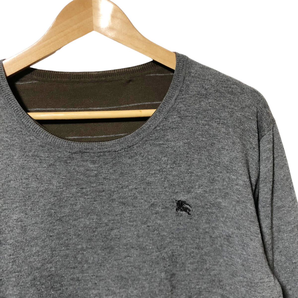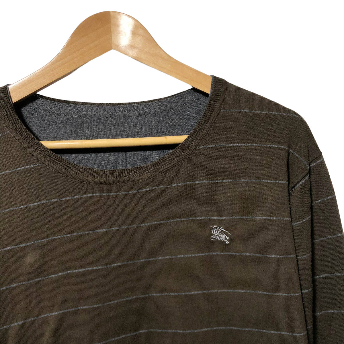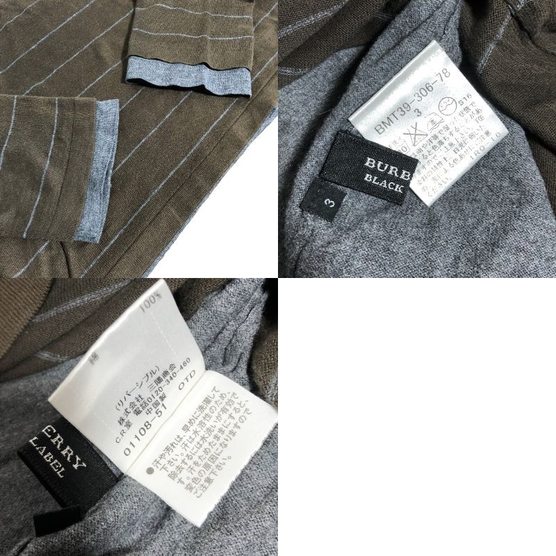 BURBERRY BLACK LABEL バーバリーブラックレーベル リバーシブル ニット セーター ボーダー 長袖 レイヤリング 3 カーキ グレー メンズ A34