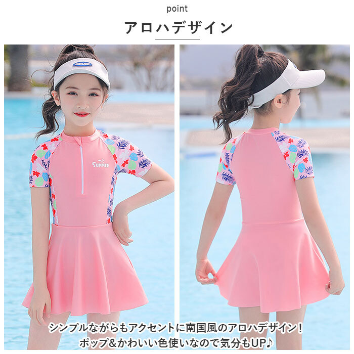 商品説明 | ・・アロハデザインで元気に可愛く水遊び!ワンピース風でかわいい「キッズ水着 女の子」が登場♪ ・【ワンピース風】 ・ひらひらかわいいワンピース風のデザイン♪安心ショートパンツ付きで、動きやすさも◎ ・【アロハデザイン】 ・シンプルながらもアクセントに南国風のアロハデザイン!ポップ&かわいい色使いなので気分もUP♪ ・【半袖タイプ/ロングタイプ】 ・露出を控えた半袖タイプとロングタイプの2種類。ラッシュガードのように日差しからお肌をガードしてくれる。 ・【伸縮性のある生地】 ・伸縮性に優れた生地を使用しているので、お子様のアクティブな動きを邪魔しない!着心地もGOOD。 ・【着脱ラクラク】 ・ファスナーはフロント部分にあるので、自分で着脱がラクラク!ファスナーガードつきなので安心。 ・【速乾性◎】 ・速乾性のあるサラっとした生地。お洗濯しやすいのも嬉しいポイント。 ・【選べるカラー&サイズ】 ・可愛いカラーのラインナップ。サイズ展開もあるので姉妹やお友達とお揃いにするのもオススメ♪ ・※4XLと5XLサイズはカップ付き仕様となっています。 |