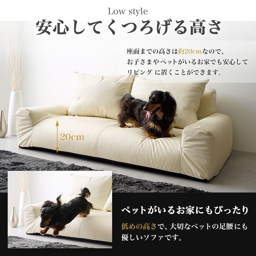 新品 レザー ソファ アイボリー ローソファ フロアソファ コンパクト ラブソファ 省スペース アイボリー ブラック 黒 2人 合皮 クッション