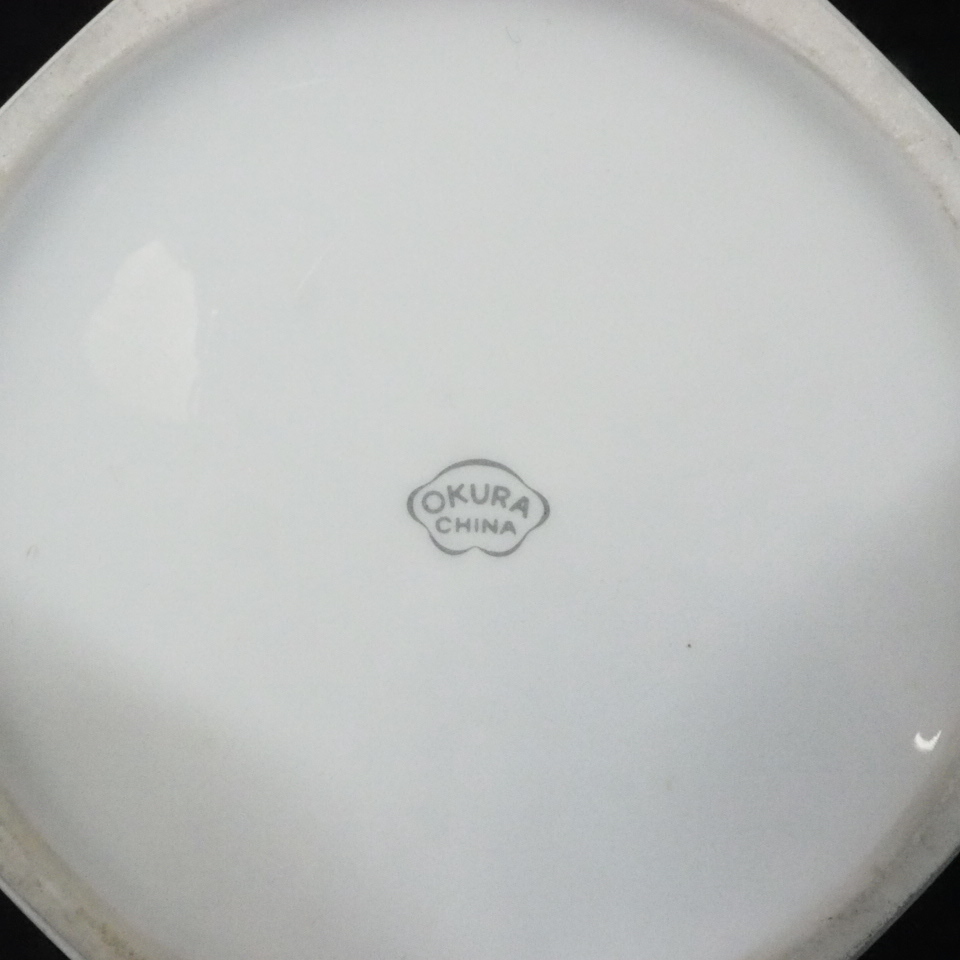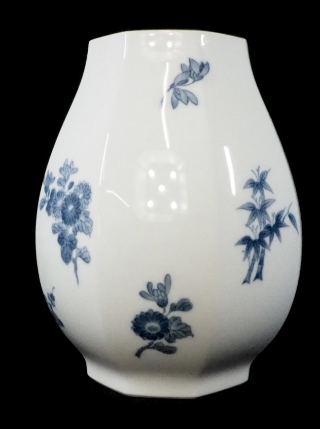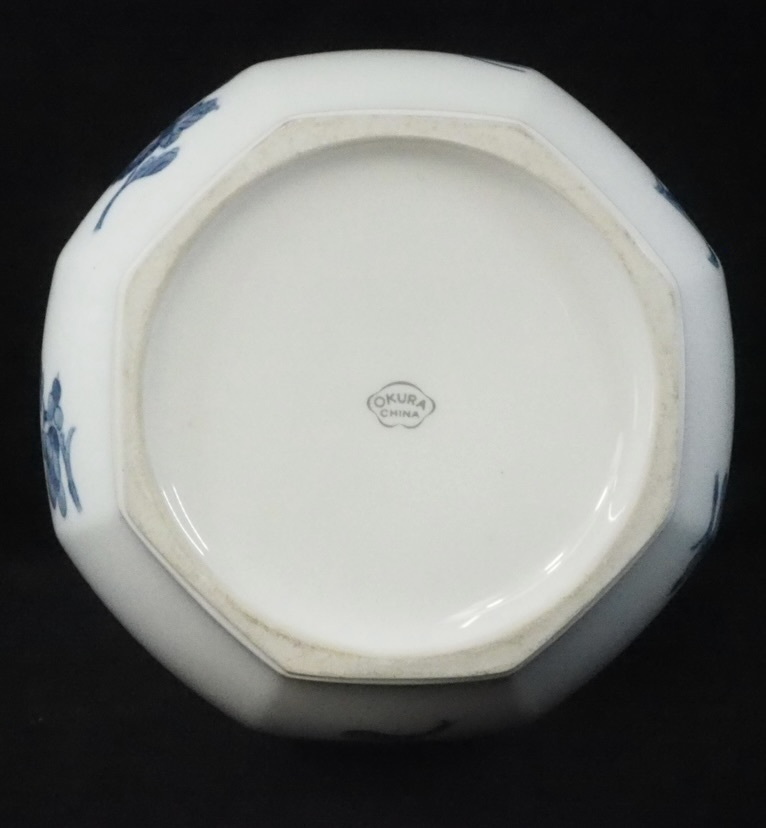昭和期ビンテージ 大倉陶器 金縁染付四君子紋八角花瓶 OKURA CHINA ツメ印有 1950年代