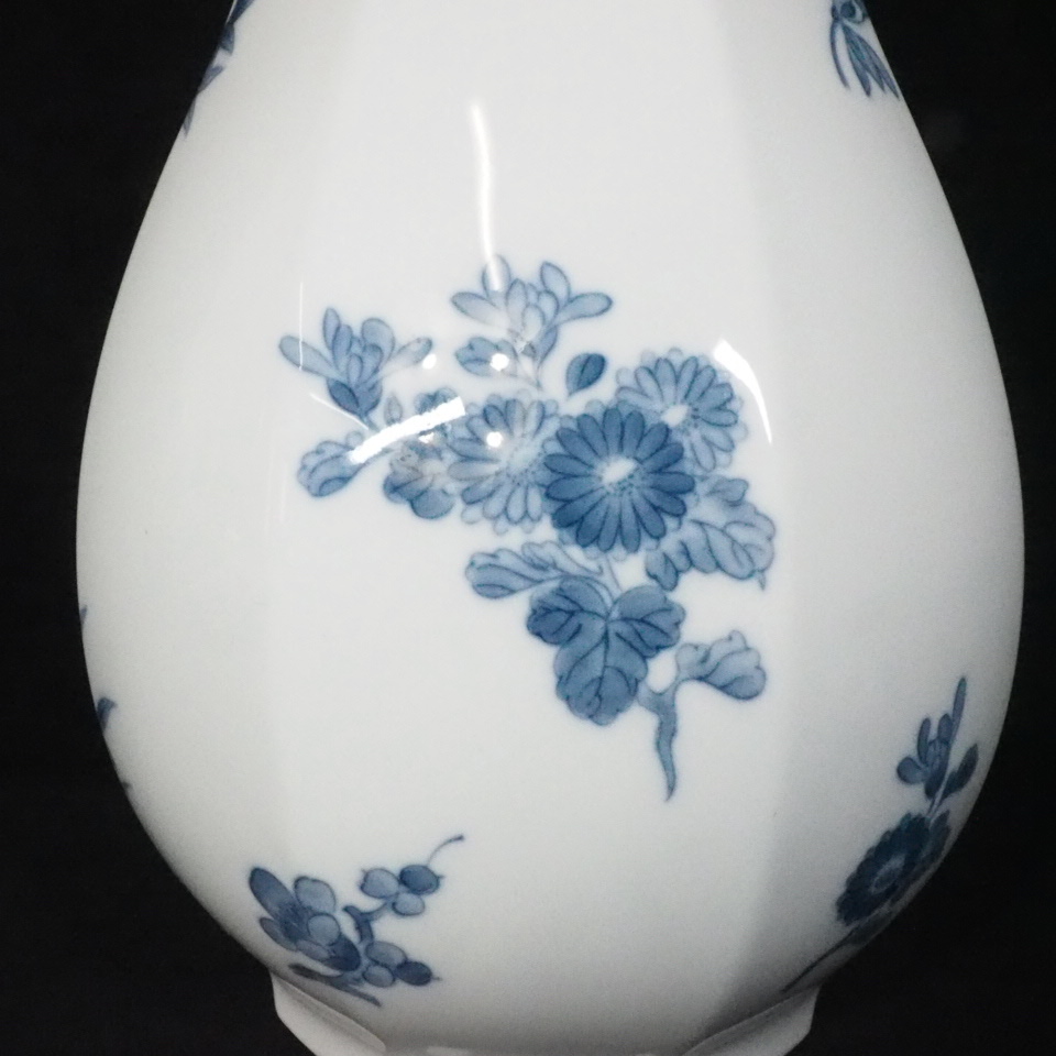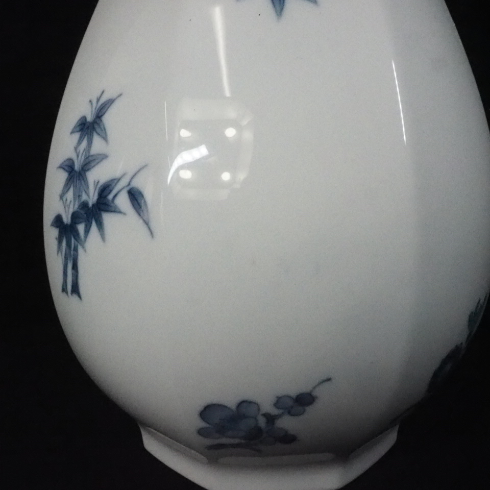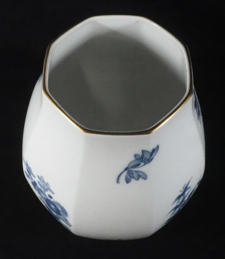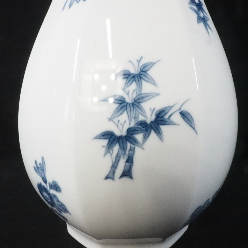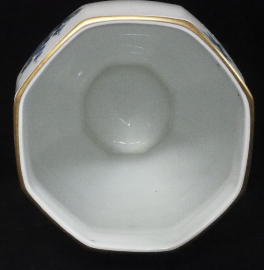 特別仕様の皇室晩餐用食器で有名な大倉陶器製!昭和期ビンテージ 大倉陶器 金縁染付四君子紋八角花瓶 OKURACHINA ツメ印有 1950年代 ANS604