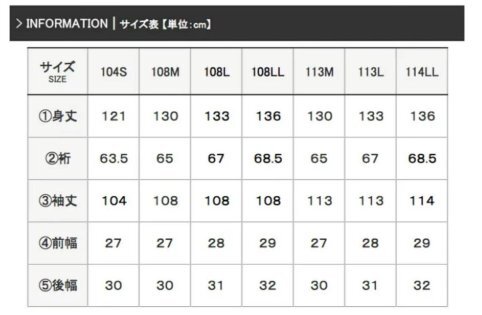 | サイズ | ■108LLサイズ 身丈136cm 裄丈68.5cm 袖丈108cm 前幅29cm 後幅32cm |