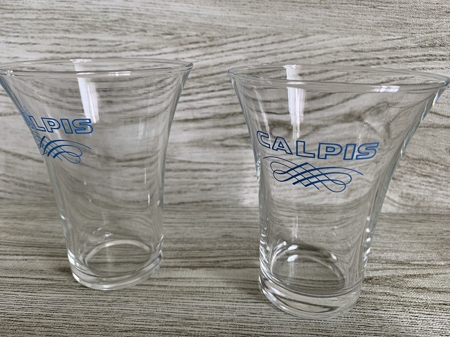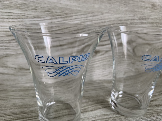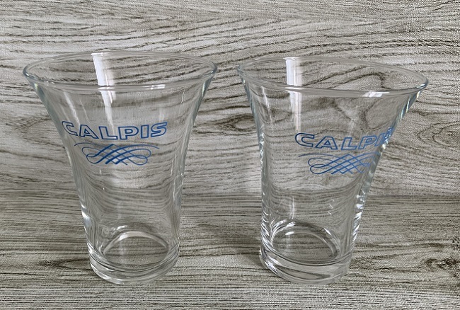 昭和レトロ CALPIS カルピス 朝顔グラス 2個セット/青文字カルピスグラス/中古