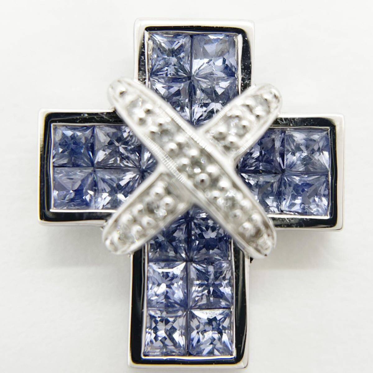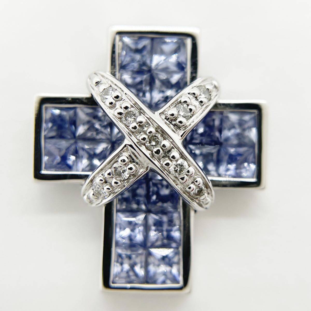 K18WGを使用した天然ダイヤモンドサファイアクロスペンダントになります。