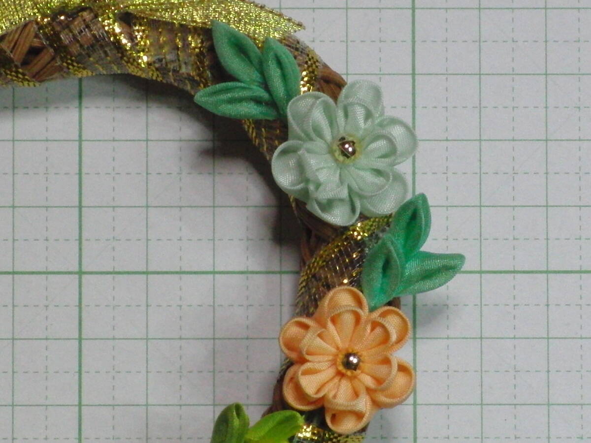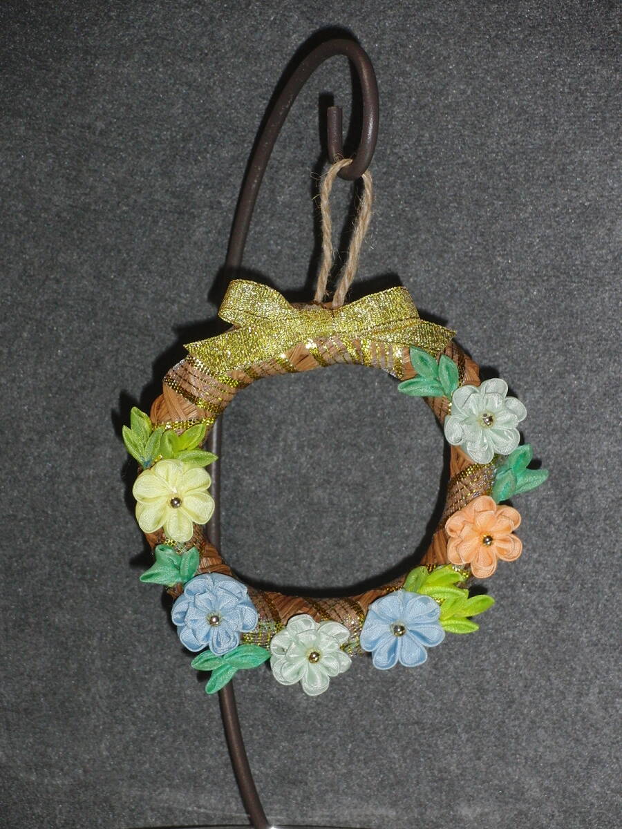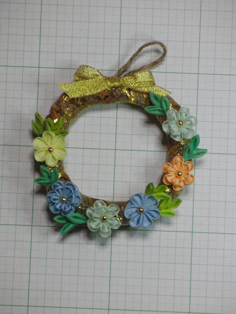 つまみ細工で作ったミニサイズで可愛らしいリースです。