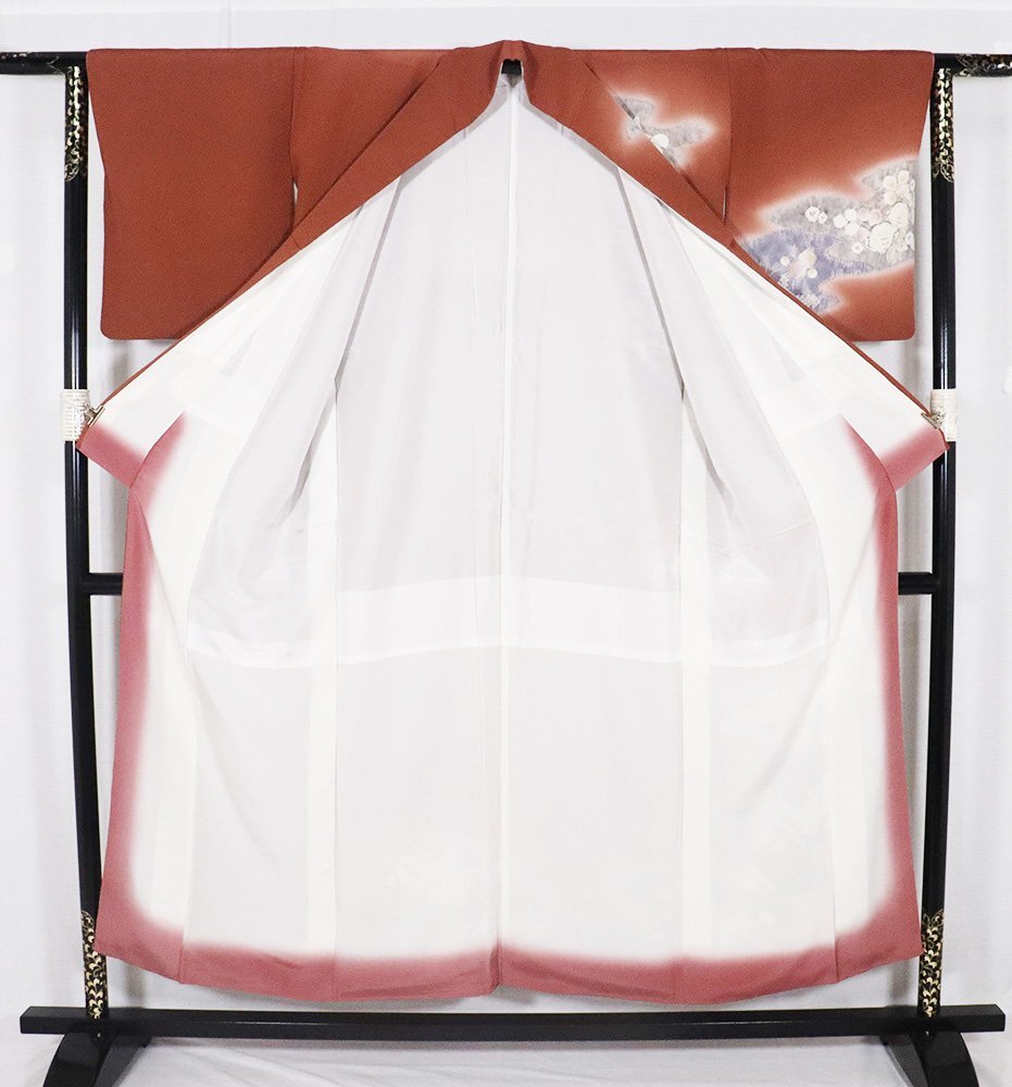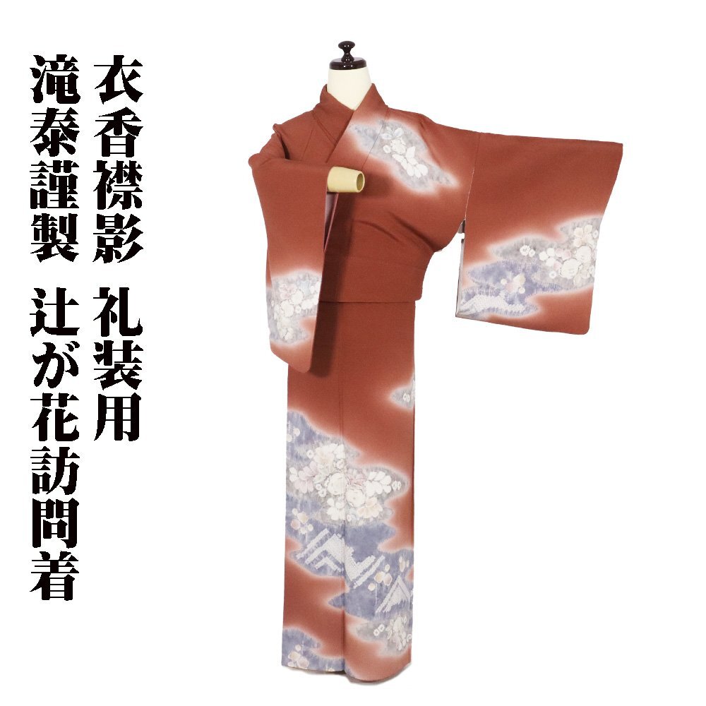 | 滝泰謹製 辻が花訪問着 袷 丹後縮緬地 赤茶暈し地 絞り辻が花 159 広襟 落款入り | |