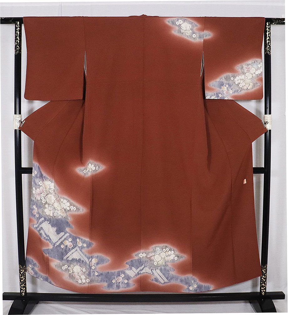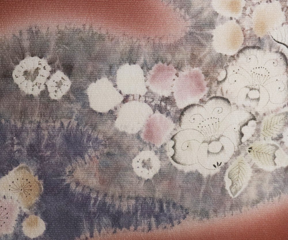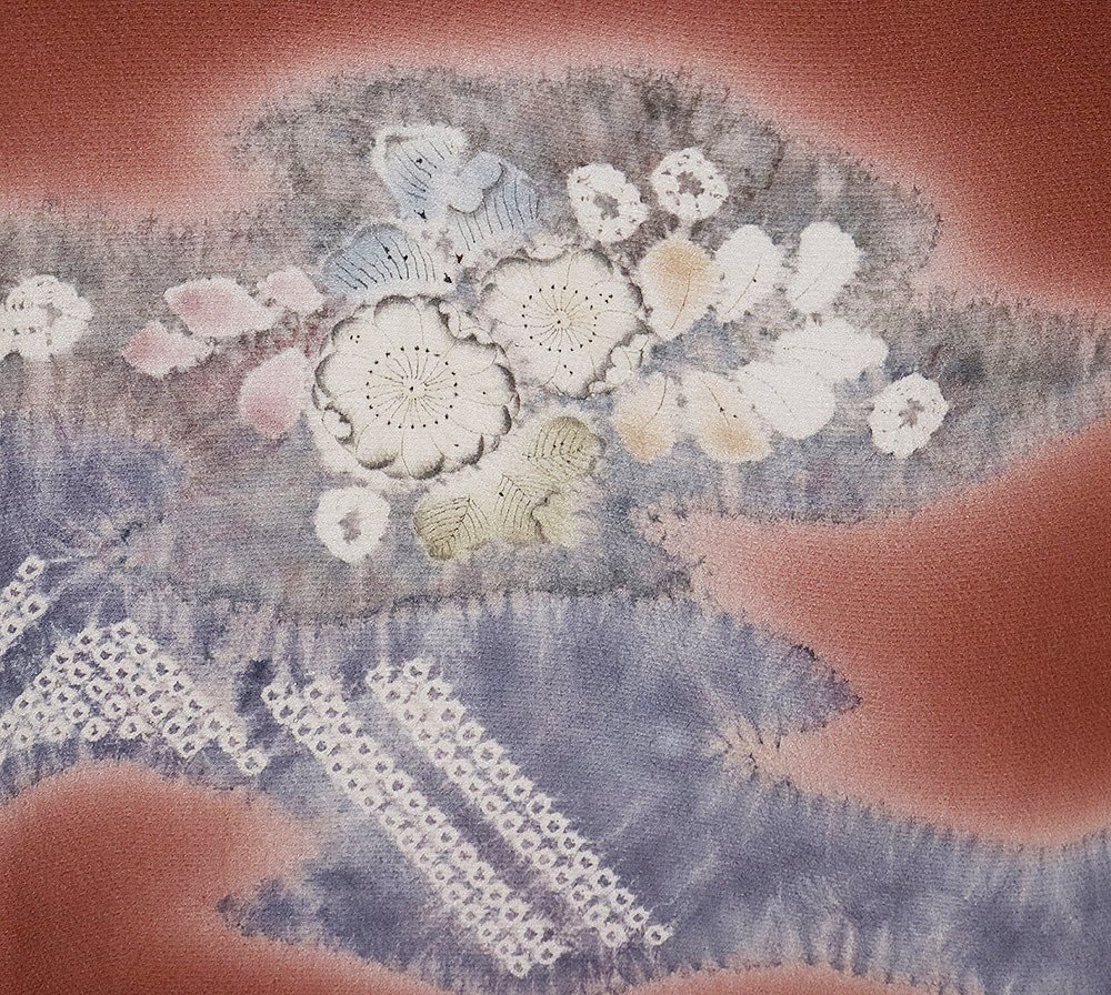 | 色・柄 | 滝泰謹製 辻が花訪問着 袷 丹後縮緬地 赤茶暈し地 絞り辻が花 (写真では上手く色が出ない場合があります。ご了承下さい) |