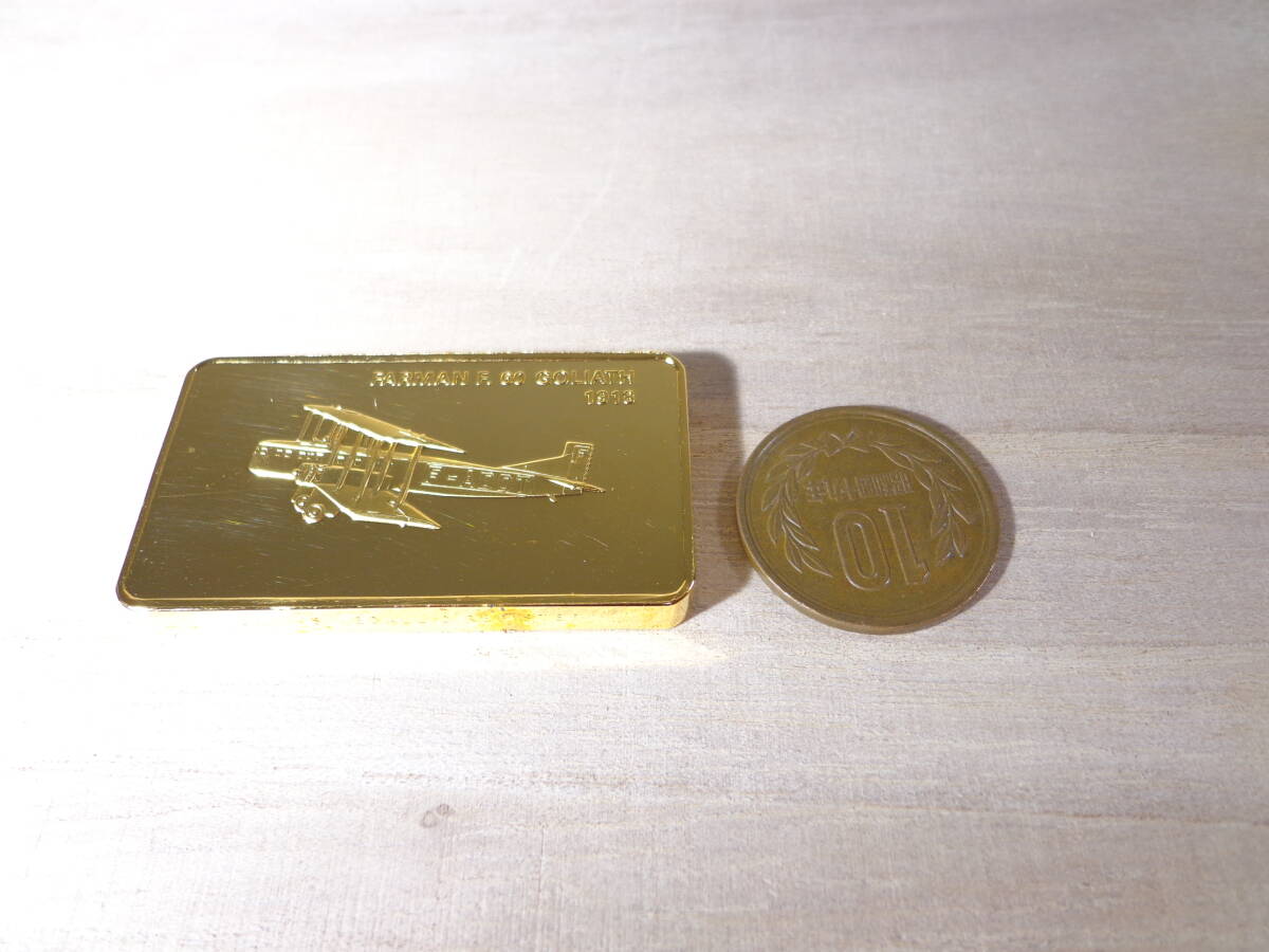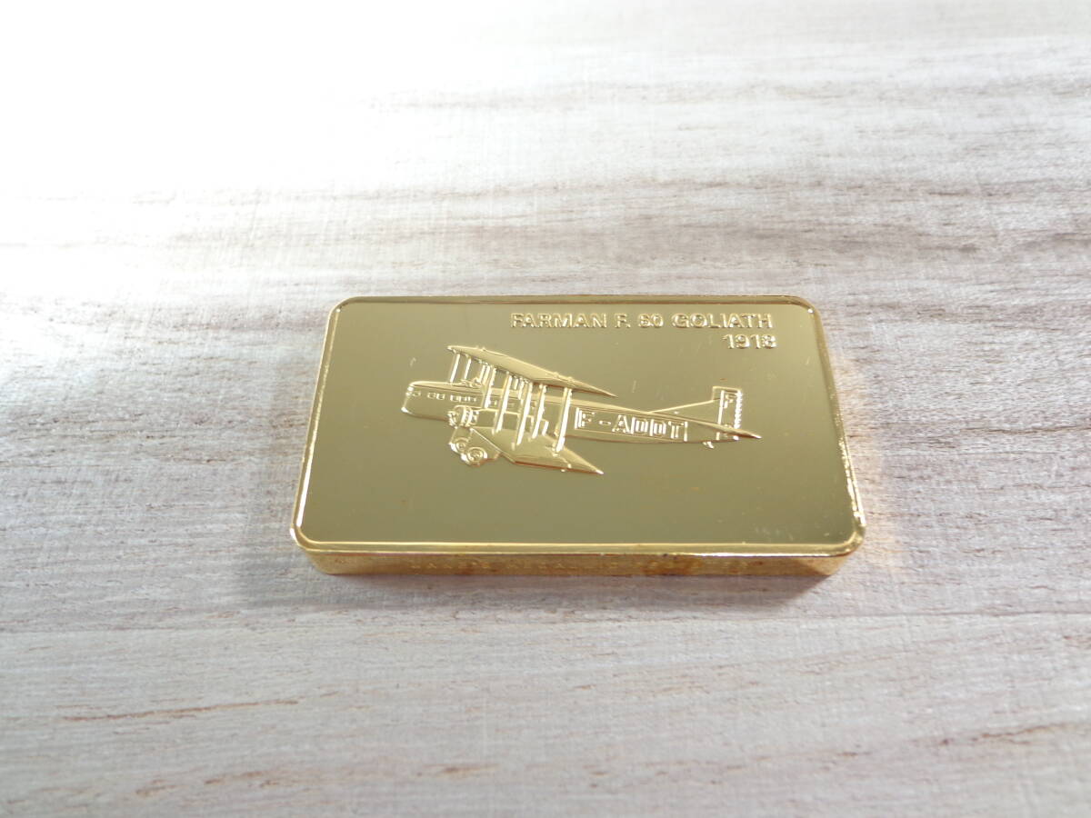イギリスのジェーン年鑑が数量限定で発売された公式記念メダルでして、そのうちの1枚でございます。 こちらはフランスで開発された爆撃機でして、1921年(大正10年)12月には丁式二型爆撃機と名づけられ、日本初の爆撃航空隊として立川飛行場に配属された爆撃機でございます。 4.8センチ × 2.7センチ 49グラム、鏡面仕上げ、純金の美しいメッキのメダルにございます。 40年以上前のものでございますゆえ、表面に変色や若干のスレが認められる箇所がある場合がございますが、深い傷やメッキの剥げなどは見受けられない次第にございます。 純金仕上げのメダルの出品で有りがちな、画像の加工などは一切行っておりませんので、真実の状態を掲載しております。 可能な限り同梱致します。 その旨を落札後にメッセージにてお伝えいただきたく存じます。 |