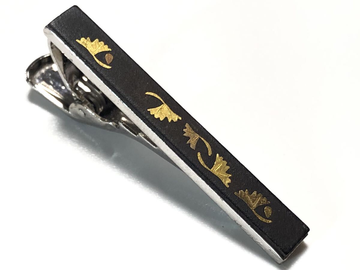 純金象嵌を使用した、銀杏細工のタイピンです。金属面に若干のくすみがあります。