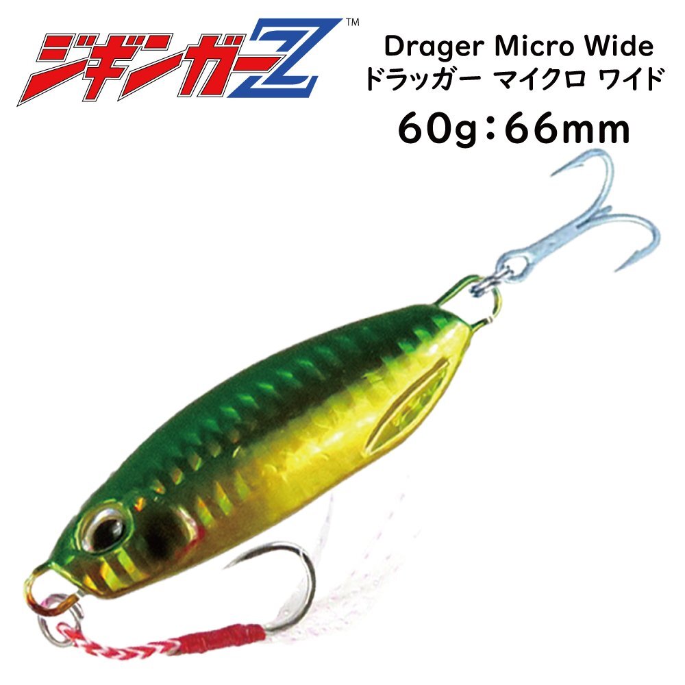 タングステン並みのマイクロ メタルジグ 60g 66mm ジギンガーZ Drager Micro Wide ドラッガーマイクロワイド ジギング 【グリーン】