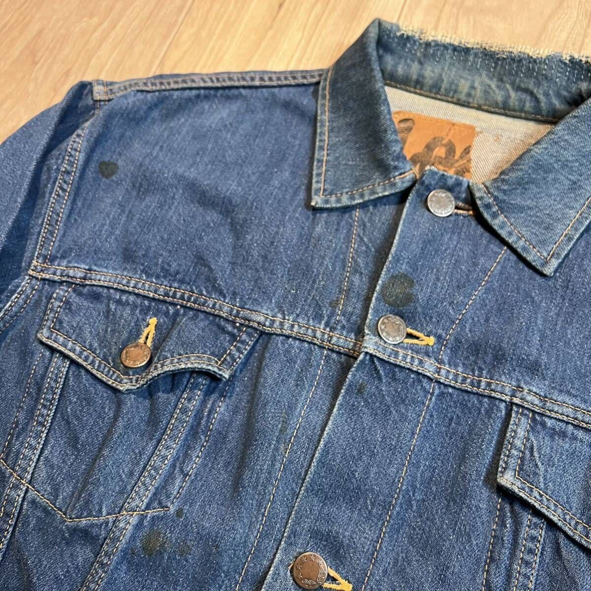 詳細→とても珍しい一点。リーバイスの3rd4thの形に作られたLeemのデニムジャケット。Leeのブートで希少価値の高いものです。ボタンはブロンズの月桂樹ボタン。黄色いセルビッチなどほとんど見かけない面白い形です。珍しい物が好きな方はお早めにご検討ください。