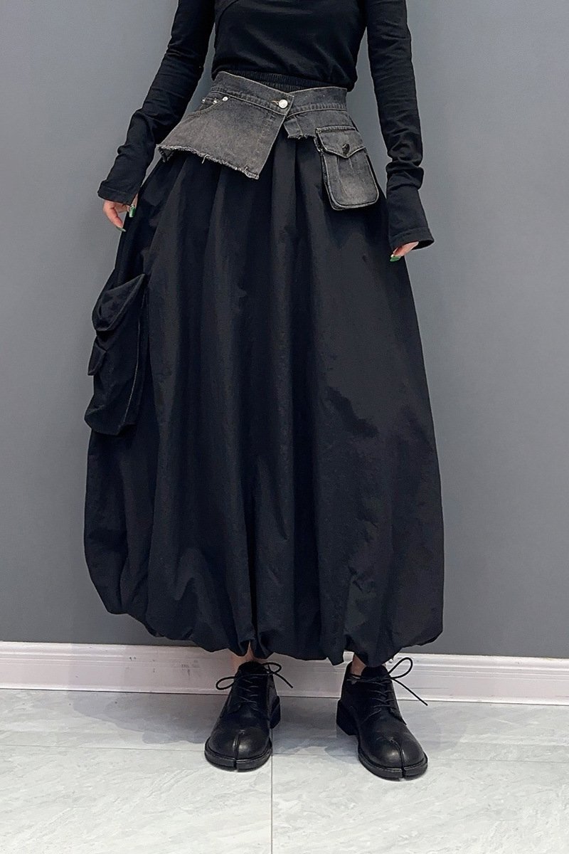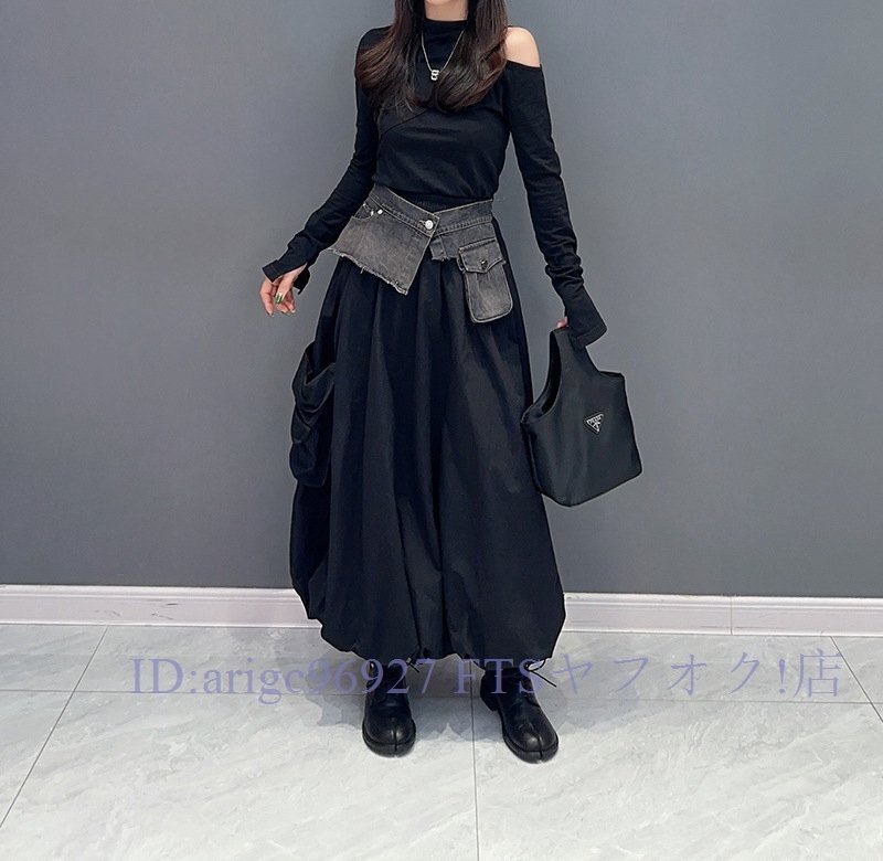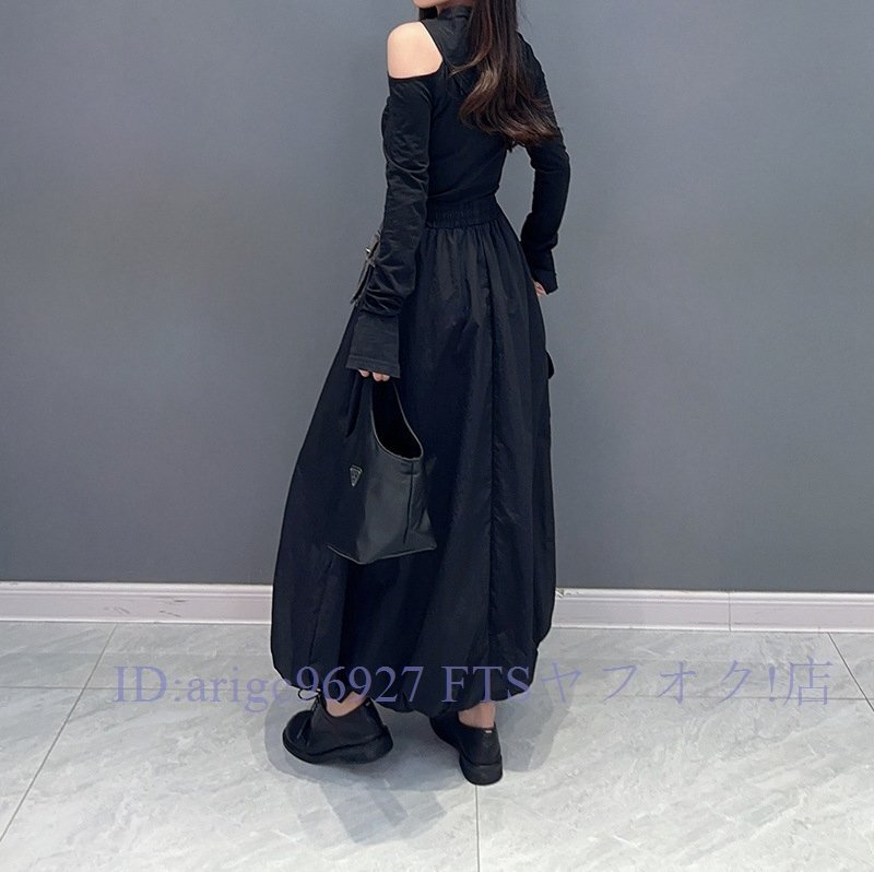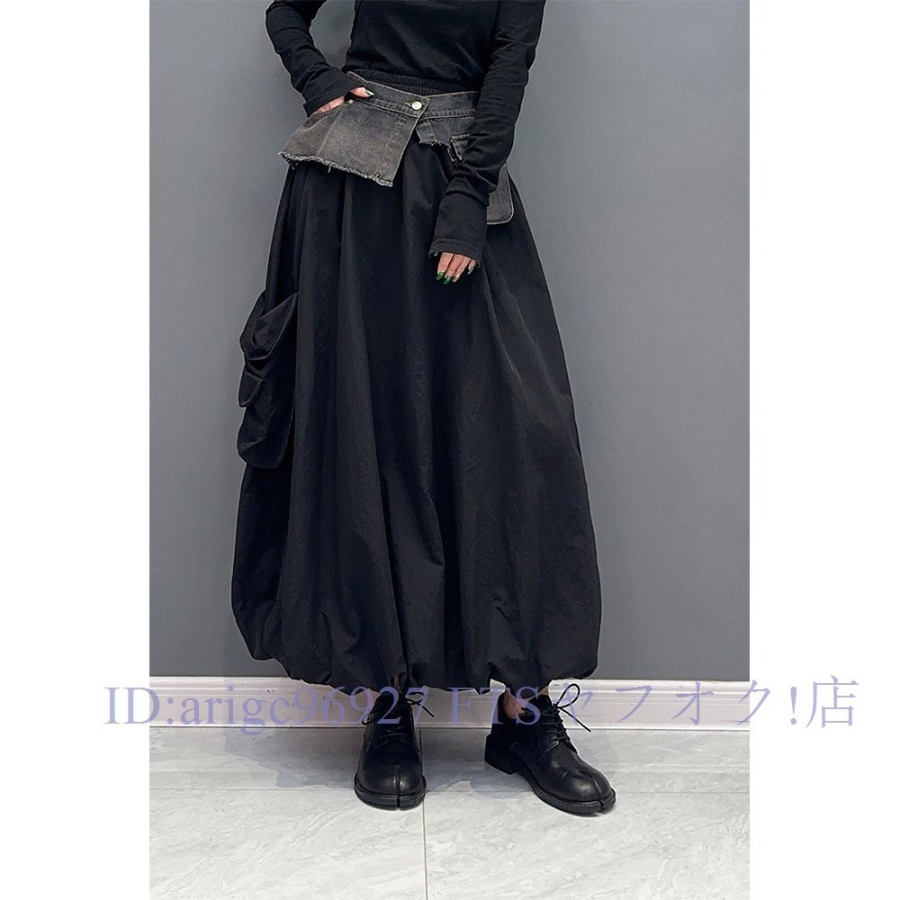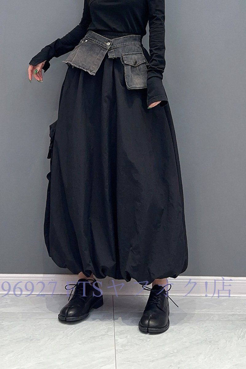 B0809☆新品スカート ゆったり 楽ちん 裾回り紐で調節可能 ブラック