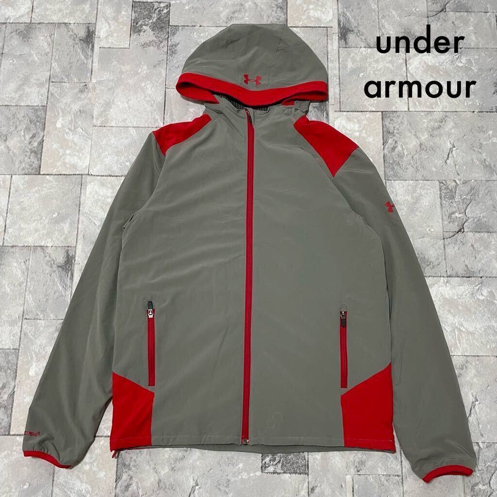 under armour アンダーアーマー ジップアップパーカー プリントロゴ スポーツ 裾ドローコード グレー サイズL 玉SS1855