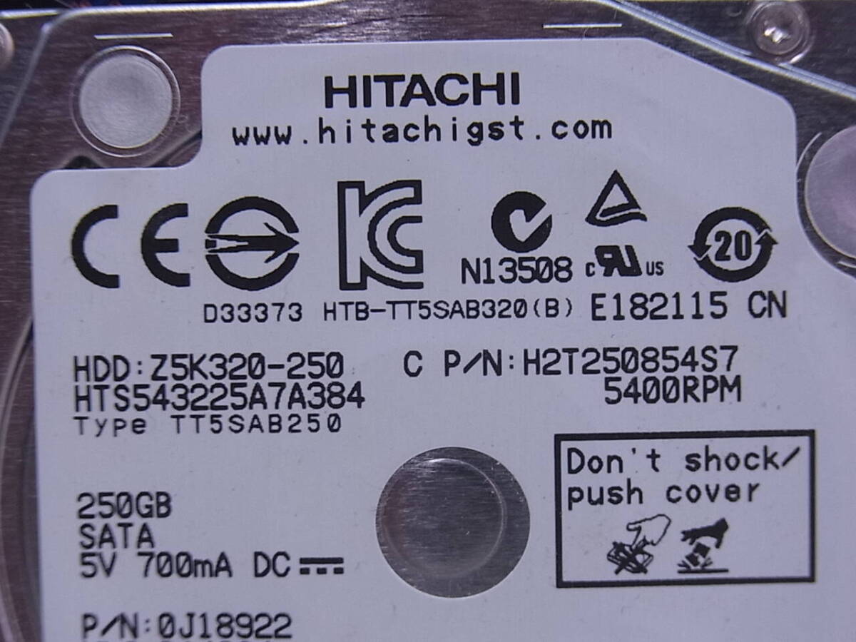 △G/223●日立 HITACHI☆2.5インチHDD(ハードディスク)☆250GB SATA300 5400rpm☆HTS543225A7A384☆中古品 | |
