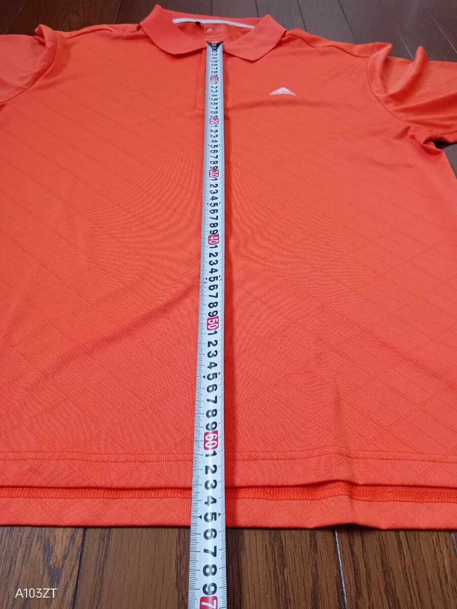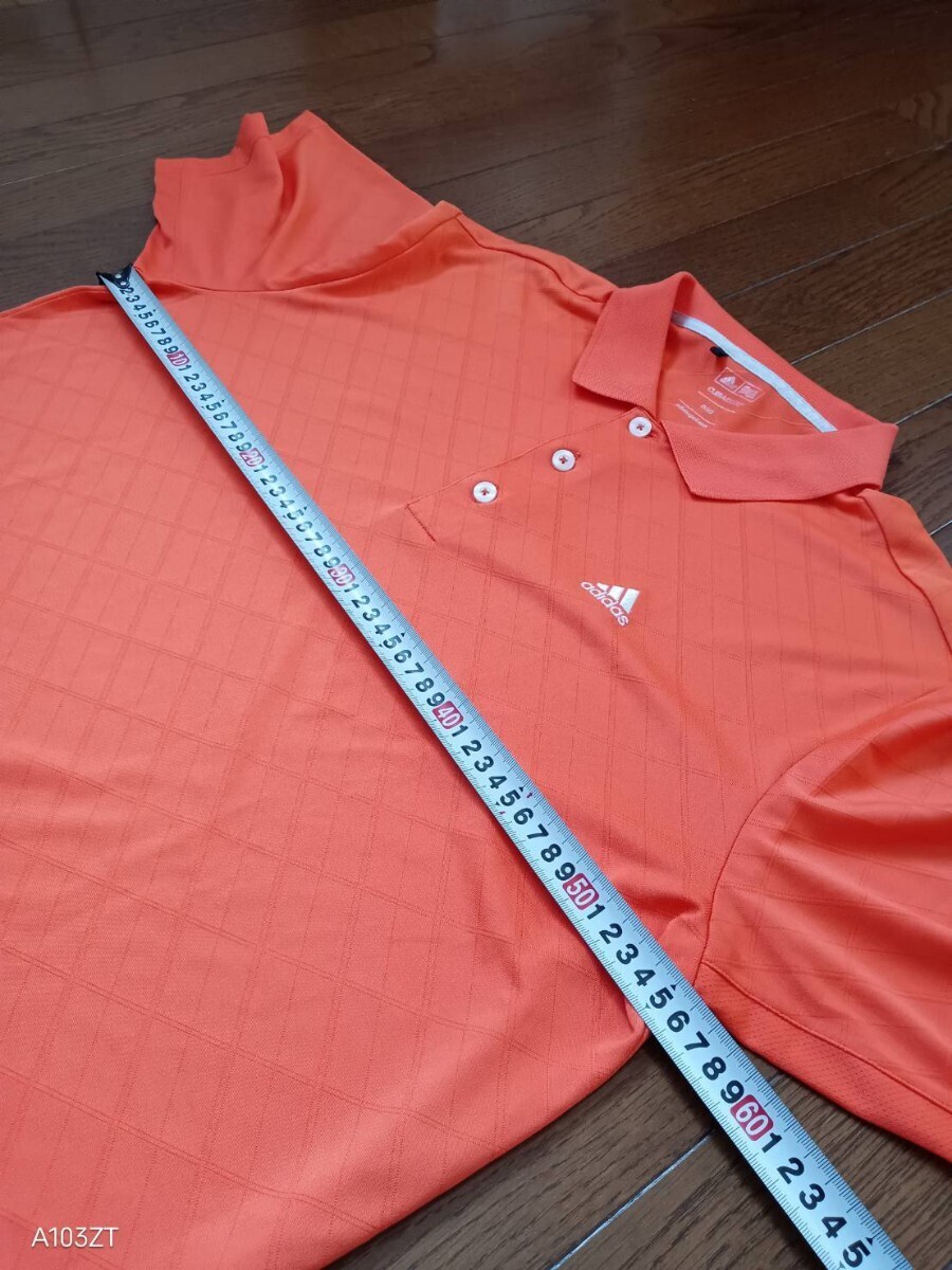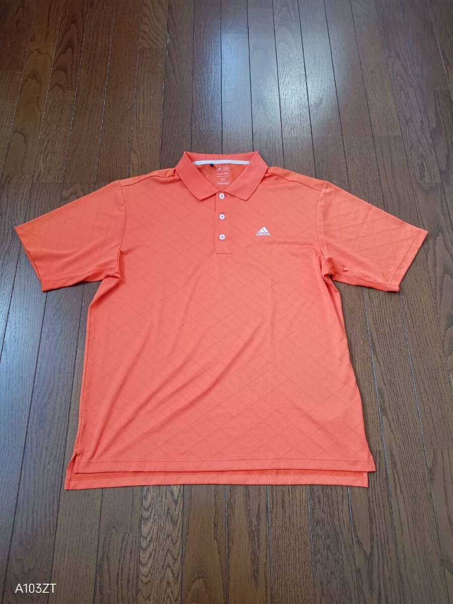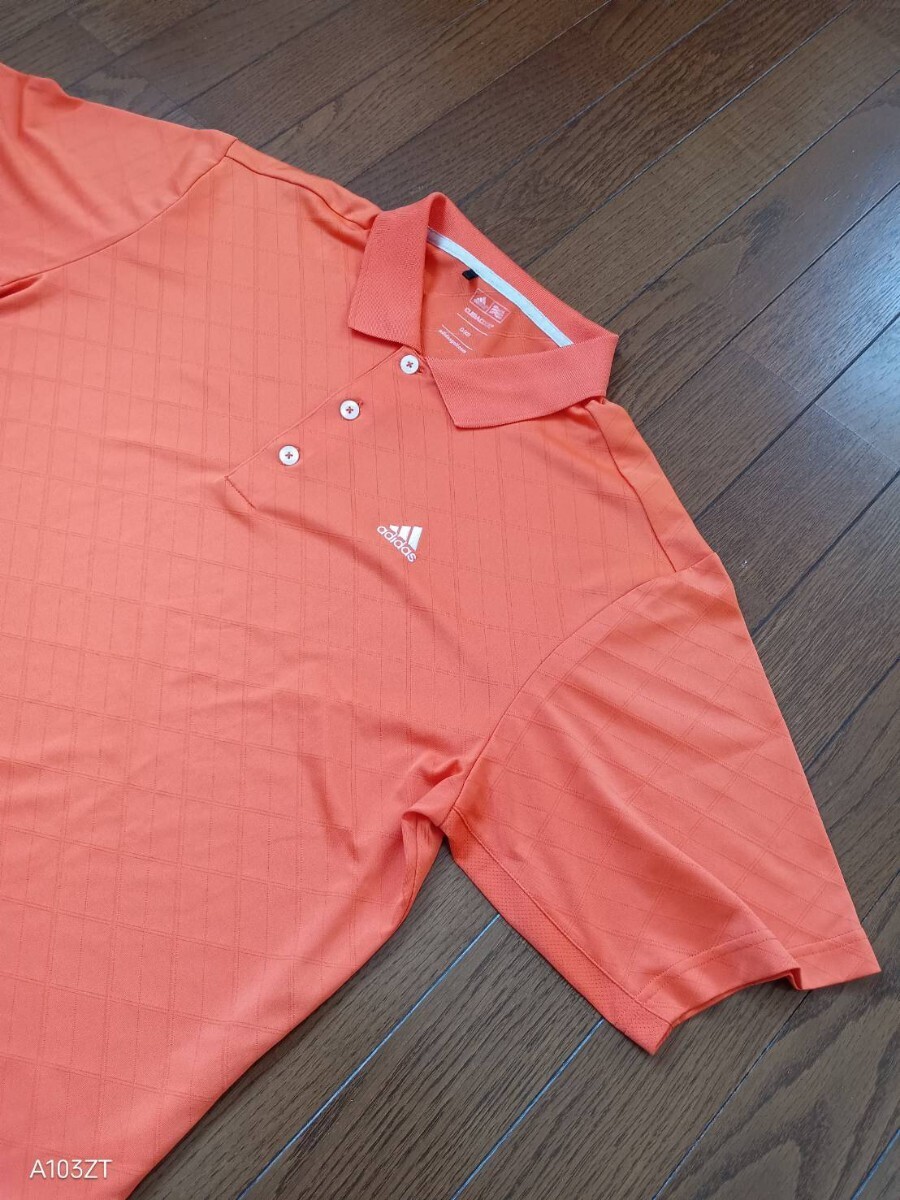 左胸にadidasのロゴ入です、鮮やかなオレンジでグリーン場で映えるポロシャツです。。