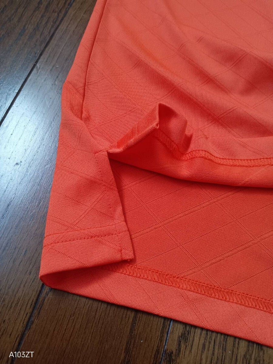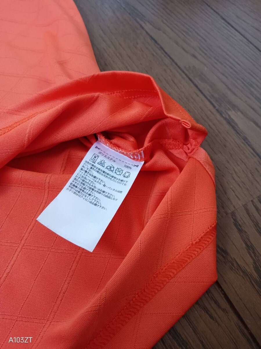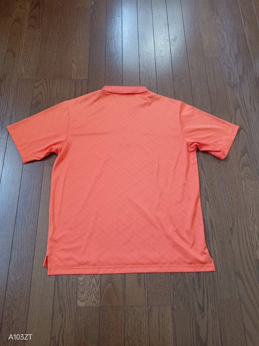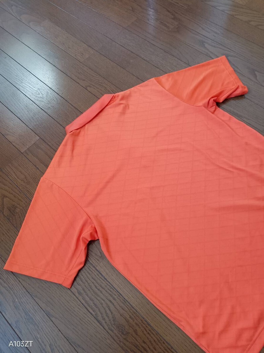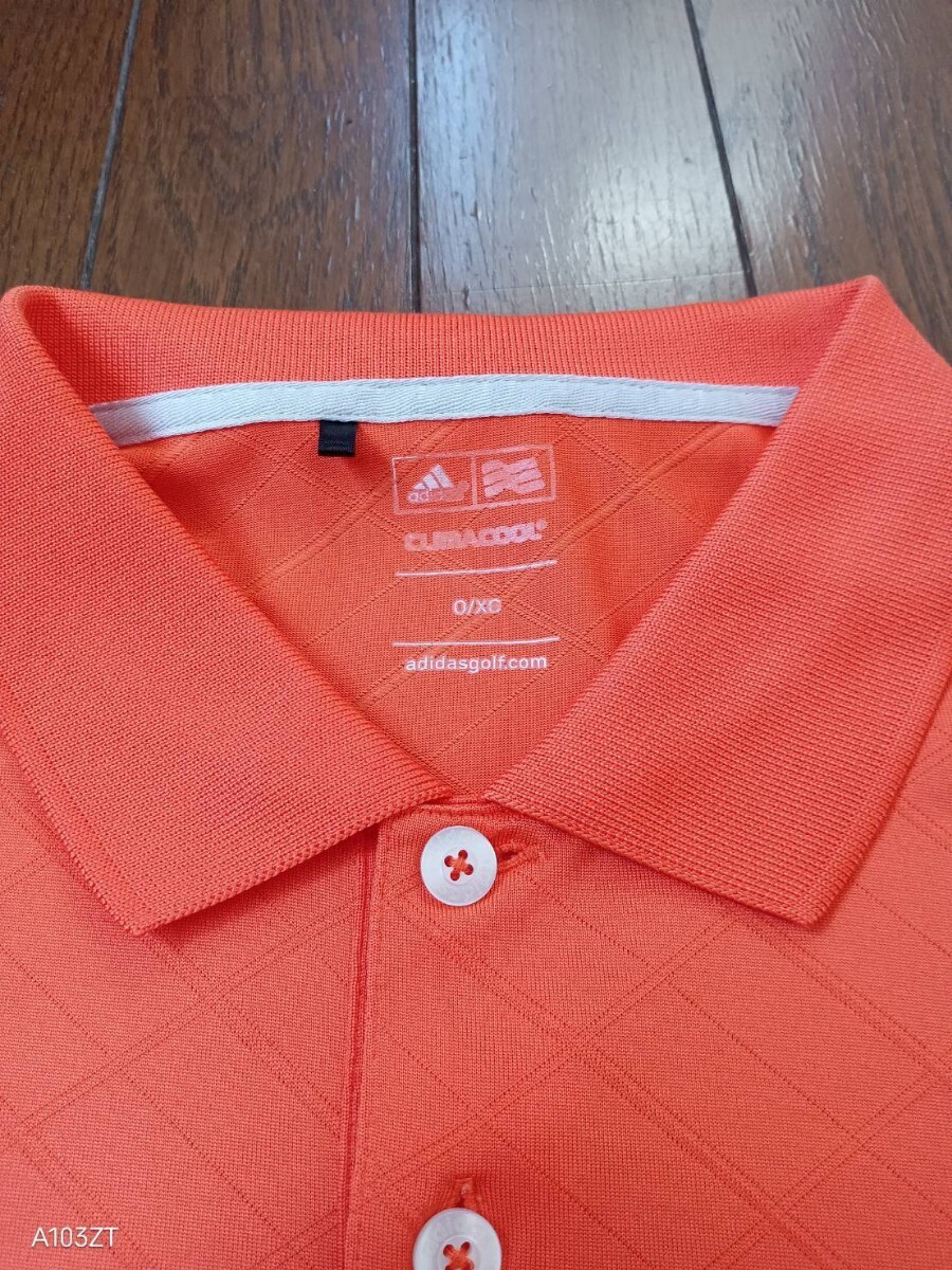 左胸にadidasのロゴ入です、鮮やかなオレンジでグリーン場で映えるポロシャツです。。
