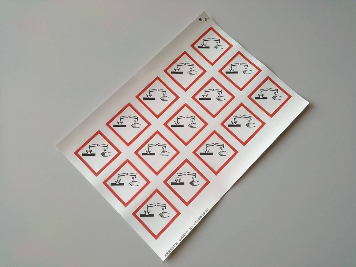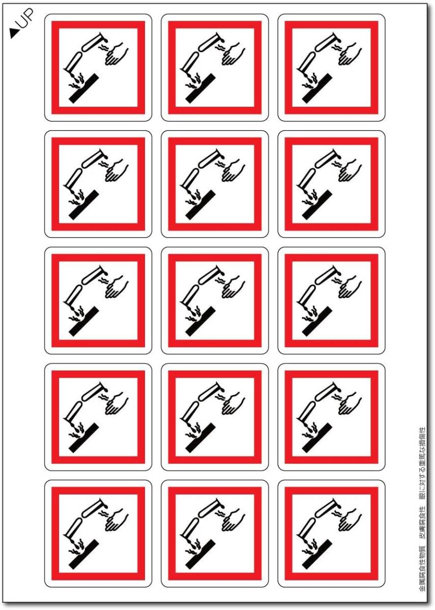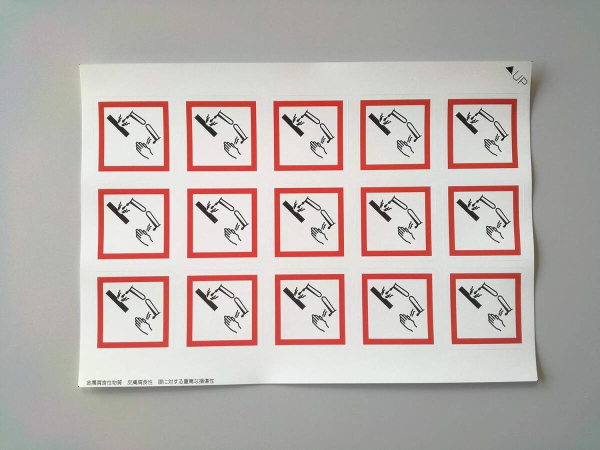 GHSラベルのステッカーです。1シートに15個レイアウトしています。