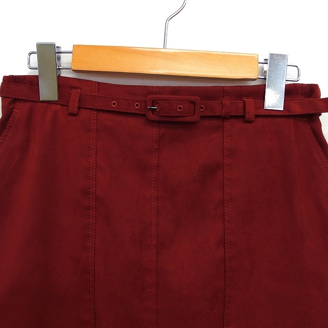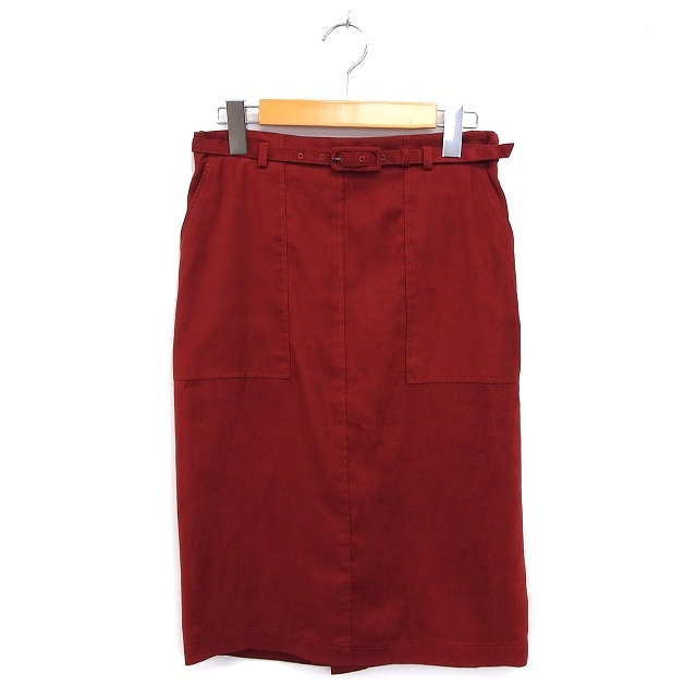 ボッシュ BOSCH フェイクスエード ナロー スカート タイト ベルト スリット シンプル 38 赤 レッド /NT4 レディース