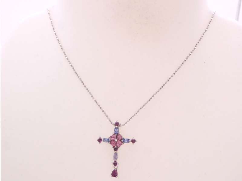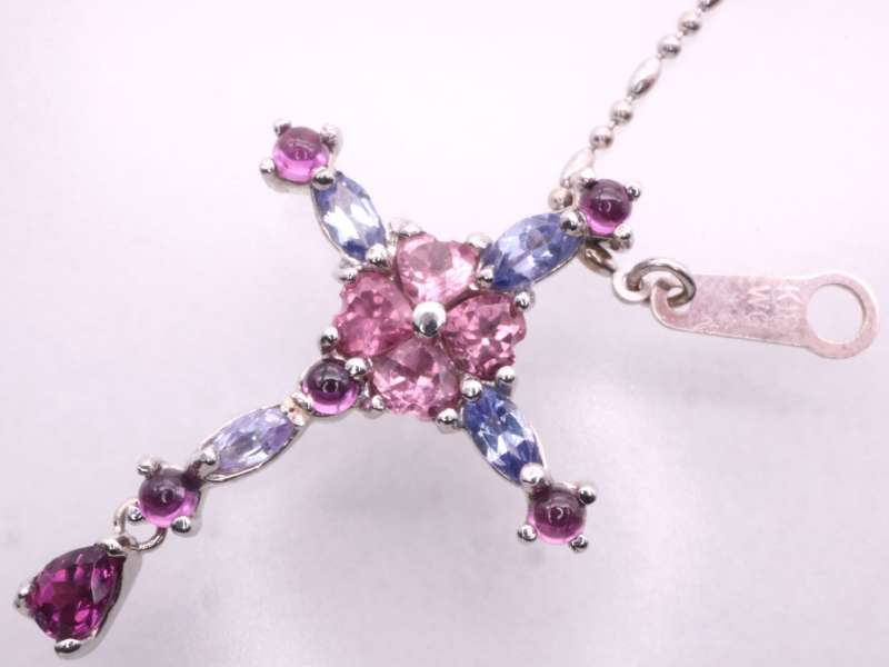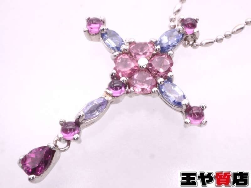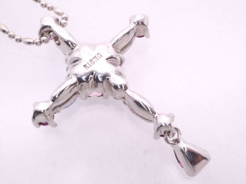 マルチカラーストーン 先端ムービング クロスペンダント ネックレス K18WG ホワイトゴールド