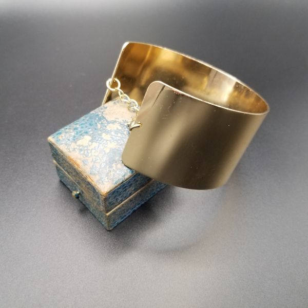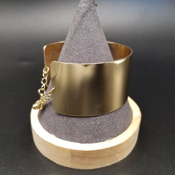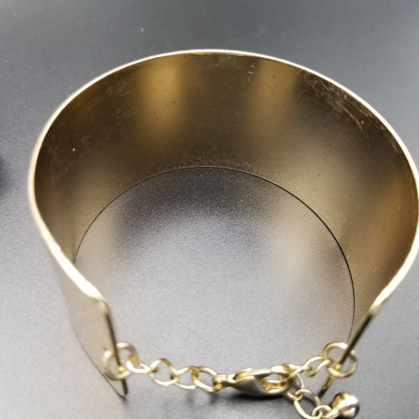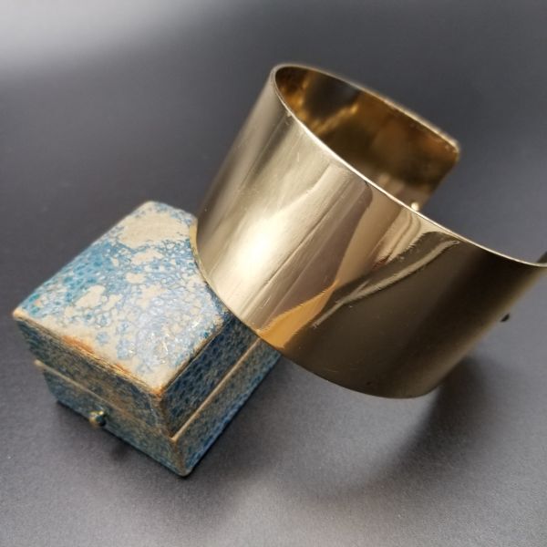 シンプルバンド ゴールドトーン ヴィンテージ ブレスレット 極幅広 バングル モダン コスチュームジュエリー Y11-E