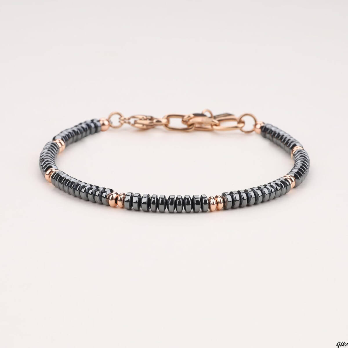 心を込めて作られたヘマタイトブレスレットは、単品で着けても良し、