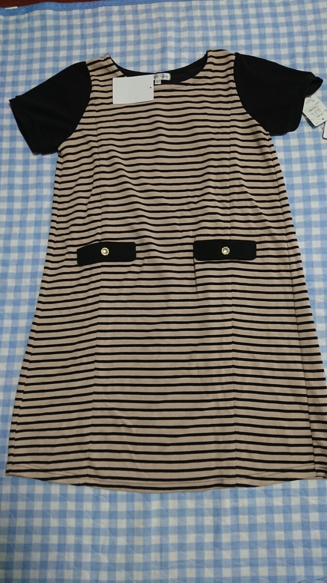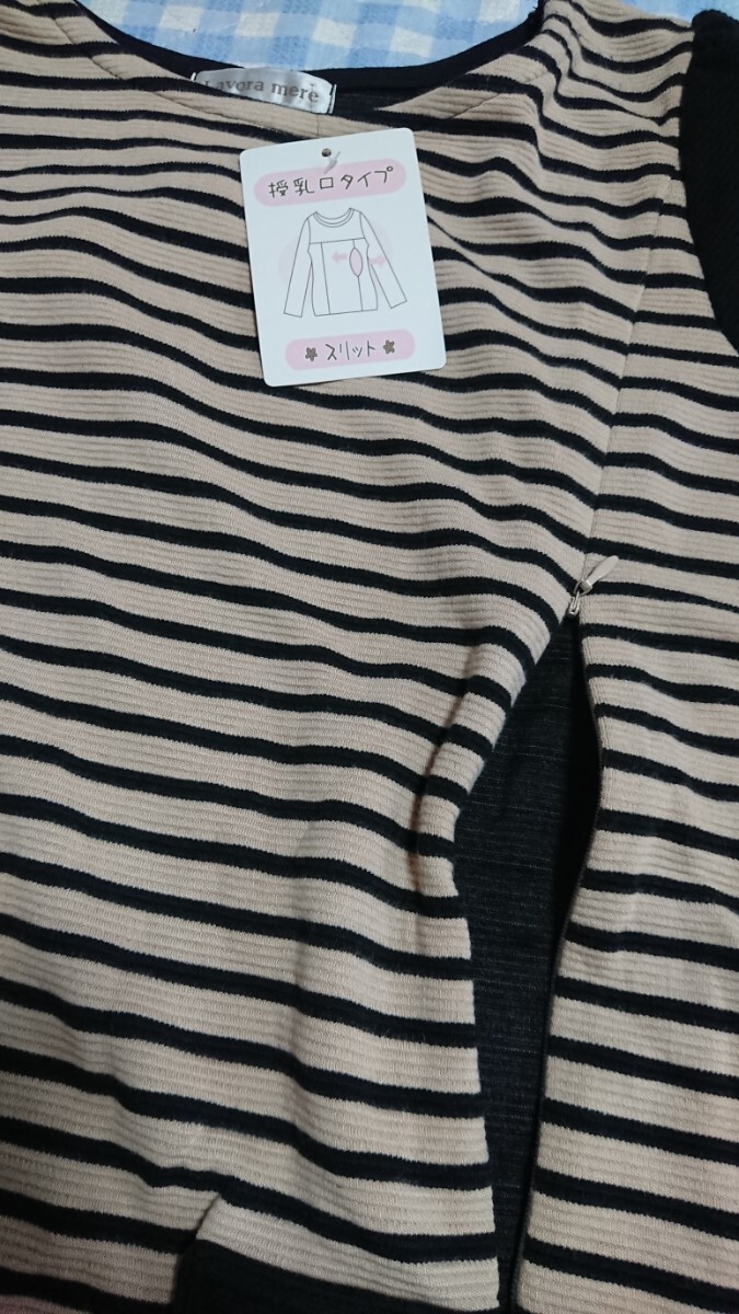 @441☆未使用・保管品☆授乳服☆切替ポンチ半袖ワンピ 茶L