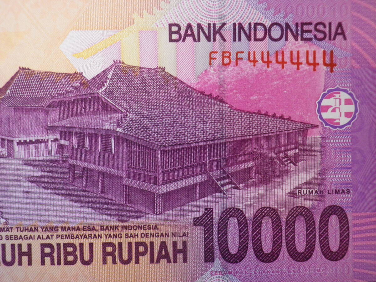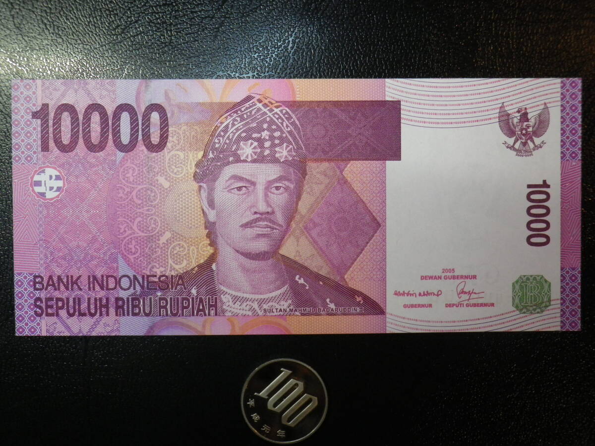 珍番 インドネシア 2005年 10000Rupiah FBF 444444 未使用