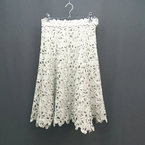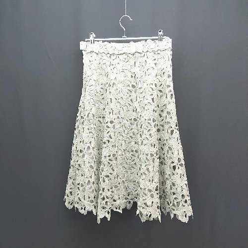 ◇ proportionbodydressing 刺? サイドファスナー 花柄 ひざ丈 フレア スカート サイズ2 グリーン レディース E