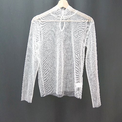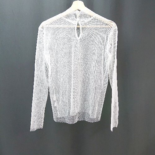 ◇ JEANASiS バックボタン ハイネック 透け感あり 長袖 ブラウス サイズFREE ホワイト レディース E