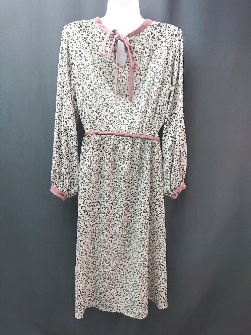 ◇ ◎ RAY CASSIN ウエストゴム マルチ柄 大人 フェミニン 長袖 ロング丈 ワンピース 表記なし ブラック レディース E
