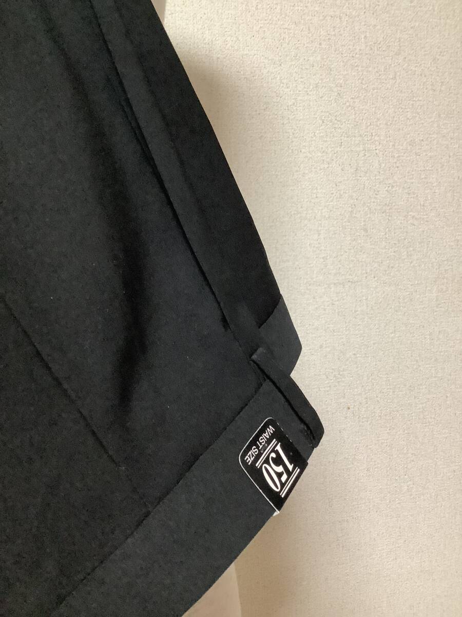 新品未使用★定価11,000円★ウエスト150cm ウエストも伸びる 高級スラックス 黒 ポリエステル100%