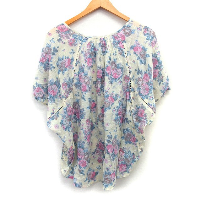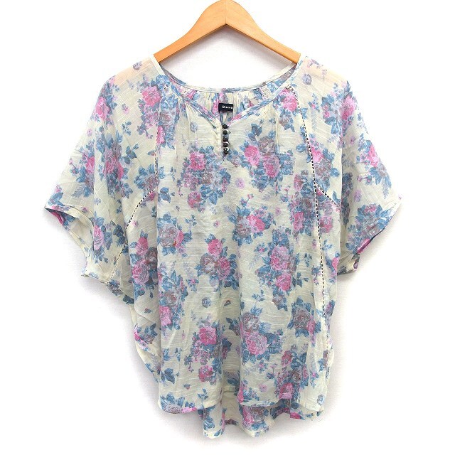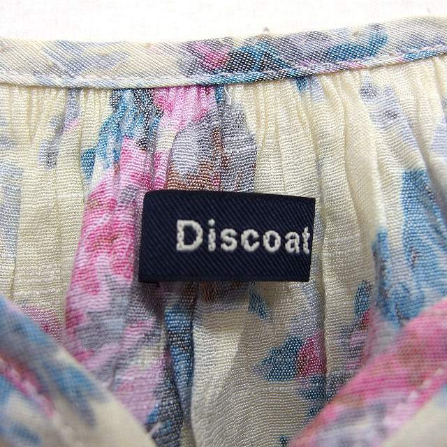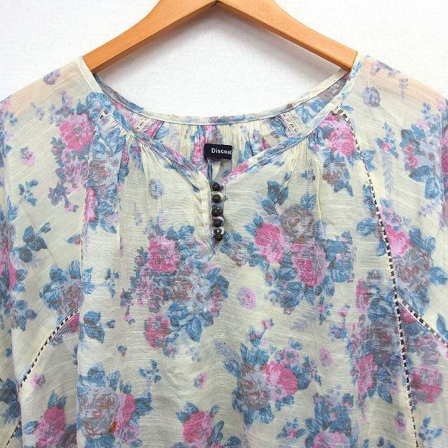 ディスコート Discoat カットソー ブラウス 透け感 花柄 切替レース ドルマンスリーブ 五分袖 Vネック F ライトベージュ /HT18 レディース