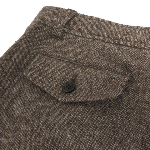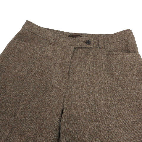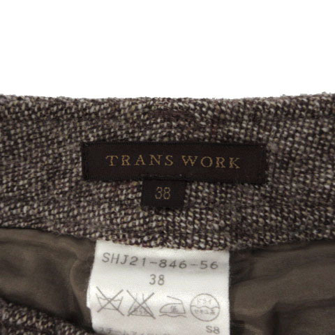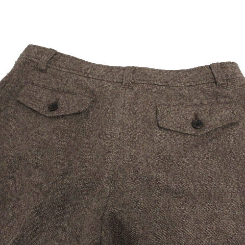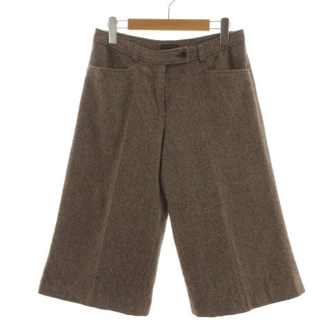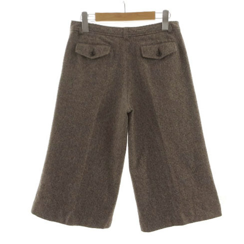 トランスワーク TRANS WORK パンツ キュロット クロップド丈 起毛 ツイード ウール混 ブラウン 茶 ホワイト 白 38 レディース