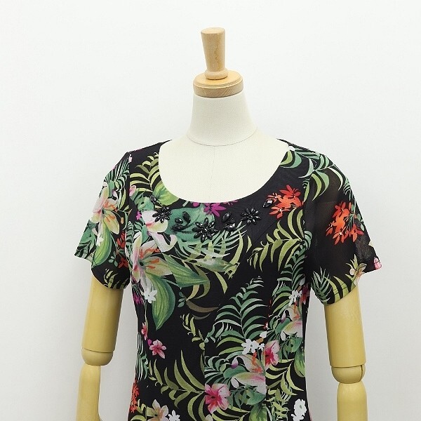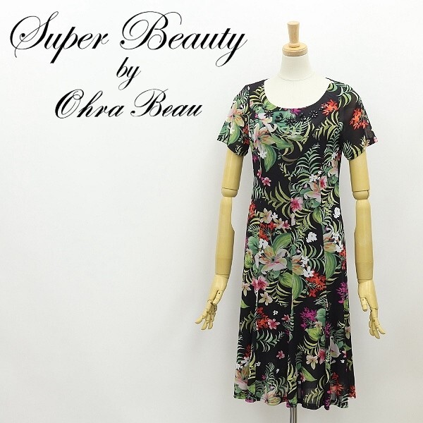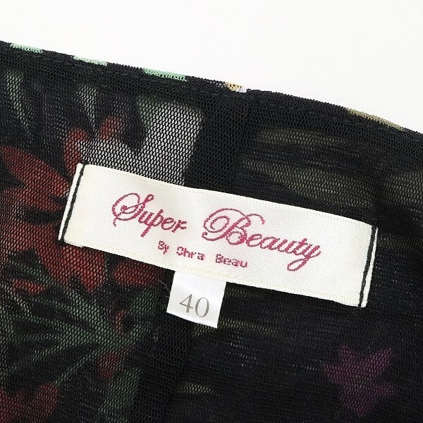 | 美品◆Super Beauty スーパービューティ 花柄 ビジュー装飾 パワーネット フレア ワンピース 40 | |