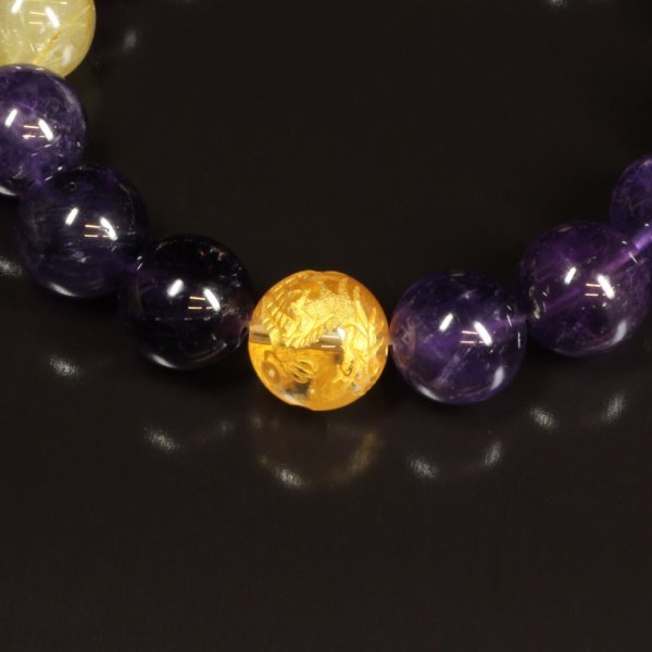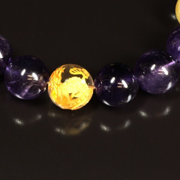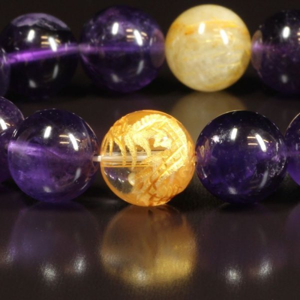 ゴールド ルチルクォーツ 金彫皇帝龍 本水晶 アメジスト 12ミリ 数珠 ブレスレット 成功運 パワーストーン 2月の誕生石 プレゼント 贈答品