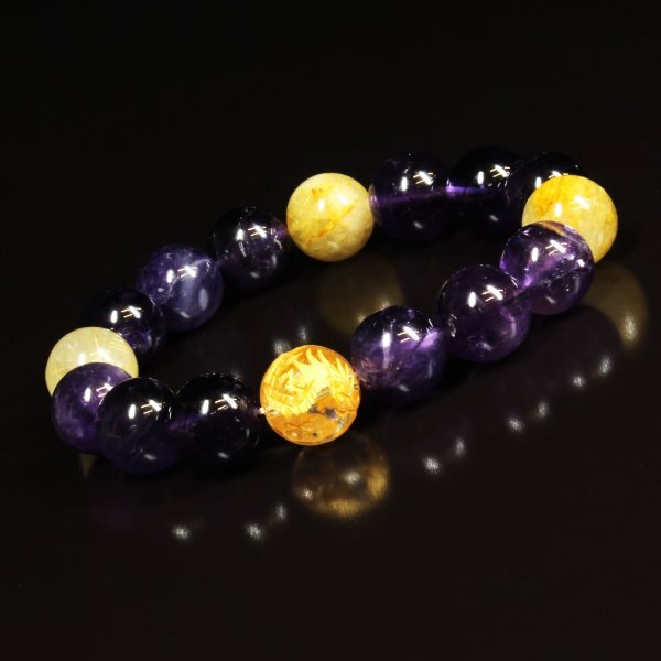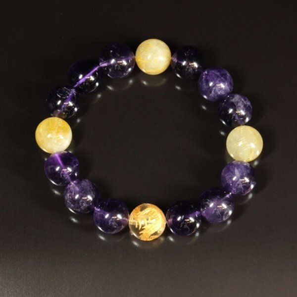 皇帝龍本水晶とアメジスト、ゴールドルチルを3玉配置した、開運天然石ブレスレット。おすすめです!