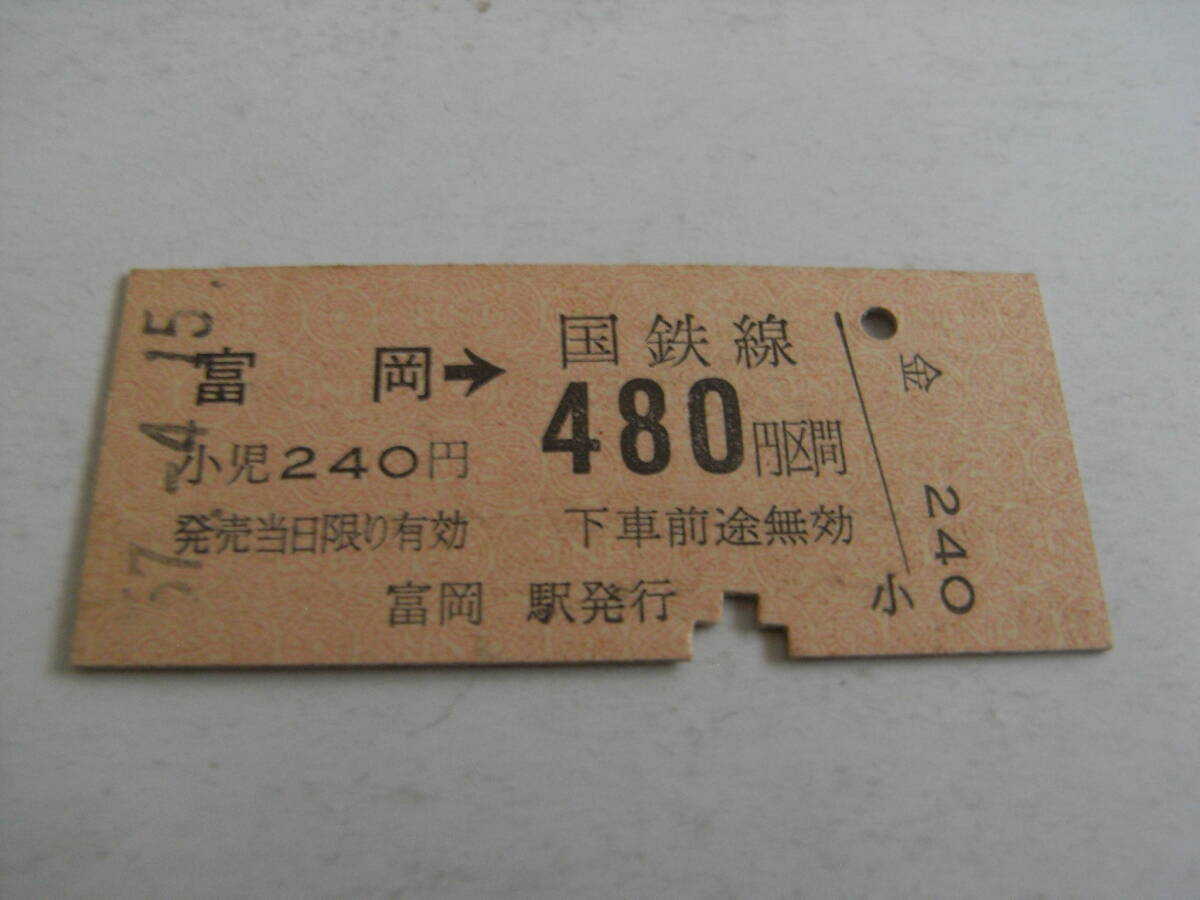 常磐線 富岡→国鉄線480円区間 昭和57年4月15日 富岡駅発行