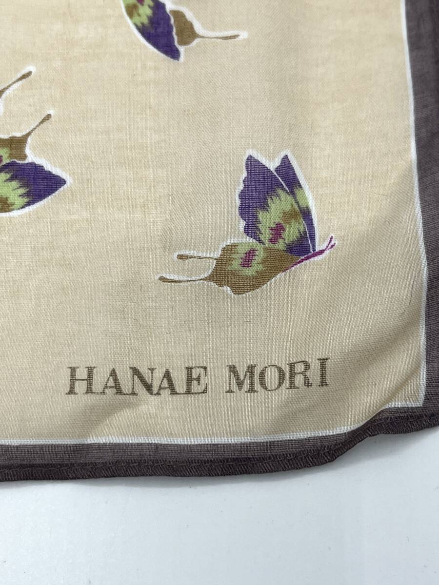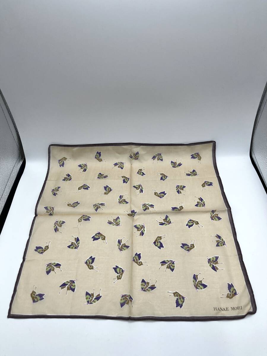HANAE MORI ハナエモリ ハンカチ バンダナ ブラウン×パープル バタフライ 蝶々 W45 H45