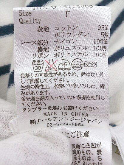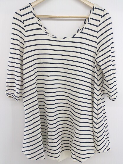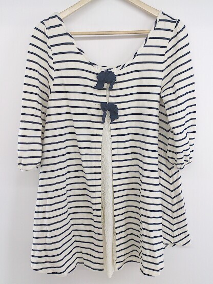 ◇ ISBIT guardian ボーダー 切替 レース 七分袖 チュニック プルオーバー サイズF アイボリー ネイビー レディース P