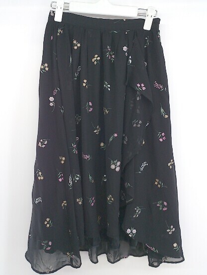 ◇ MISCH MASCH ミッシュマッシュ 花柄 膝下丈 フレア スカート サイズM ブラック グリーン系 マルチ レディース P