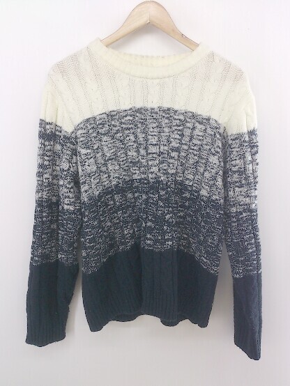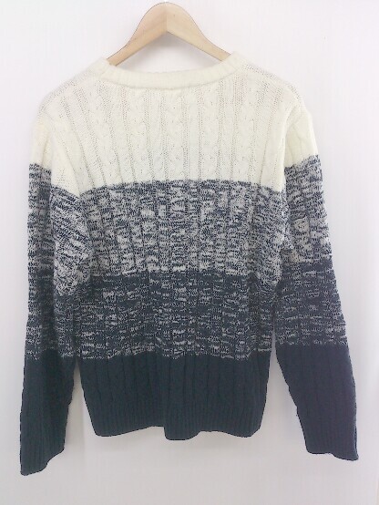 ◇ THE SHOP TK グラデーション ケーブル 長袖 ニット セーター サイズL アイボリー ネイビー系 メンズ P
