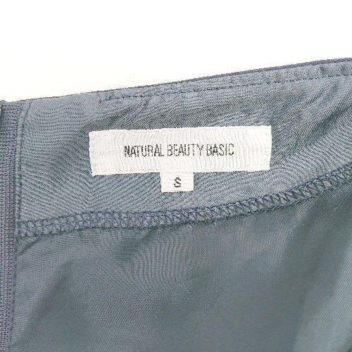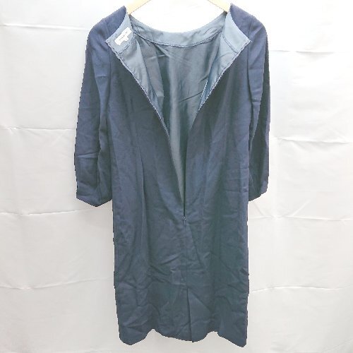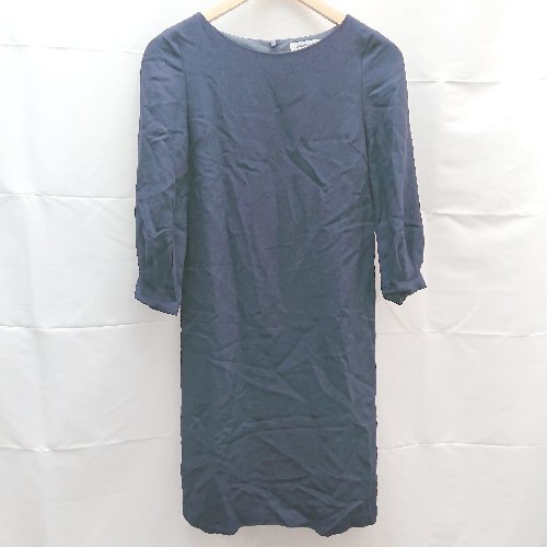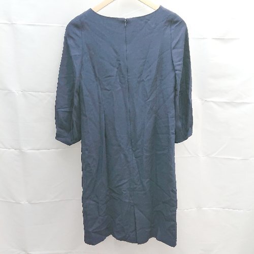 ◇ NATURAL BEAUTY BASIC バックチャック 無地 レーヨン シンプル 長袖 ひざ丈 ワンピース サイズS ネイビー レディース E