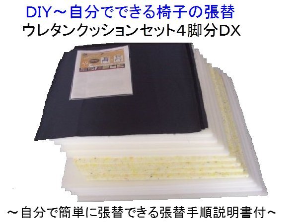 椅子張替キットセット・クッション材料(ウレタン3種類+裏地)4脚分