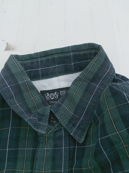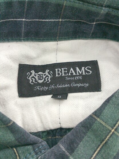 ◇ BEAMS ビームス チェック サイドスリット 長袖 シャツ ブラウス グリーン系 レディース E