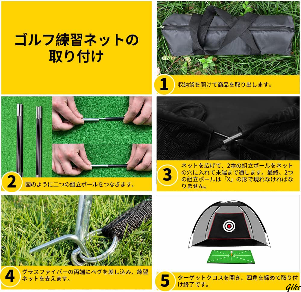 また、4つのゴルフマットペグも付属しており、芝生にマットを固定できます。