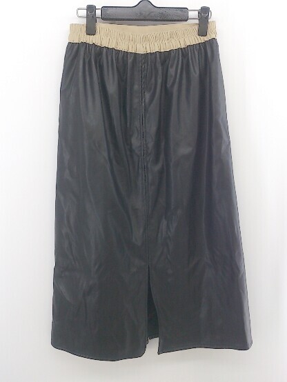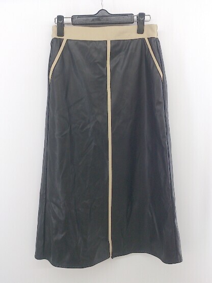 ◇ riche glamour リシェグラマー 切替 フェイクレザー 膝下丈 ナロー スカート サイズM ブラック ベージュ系 レディース P