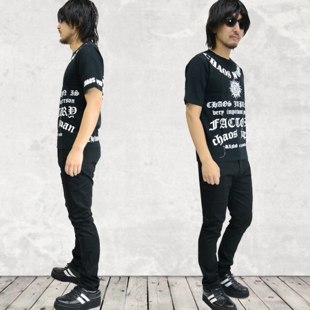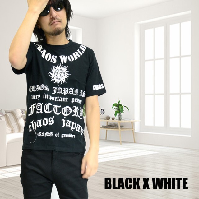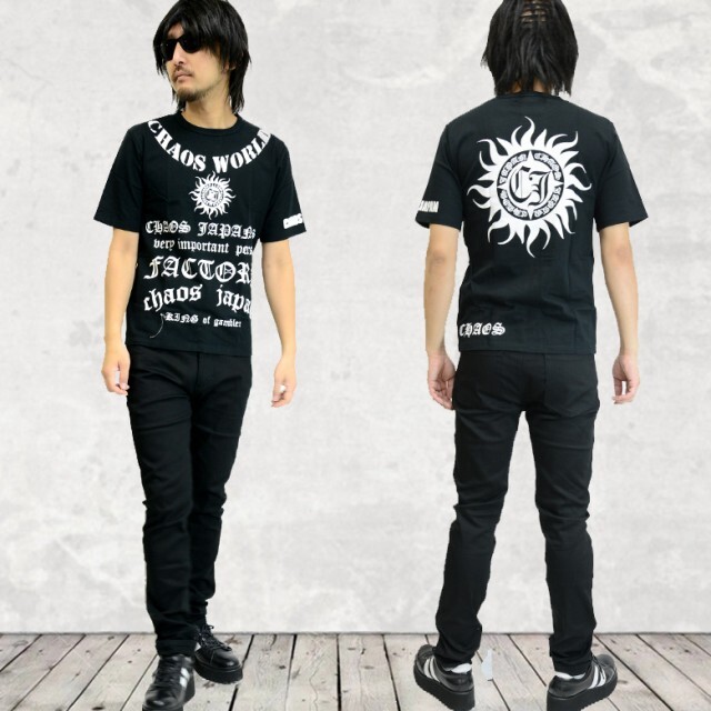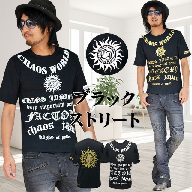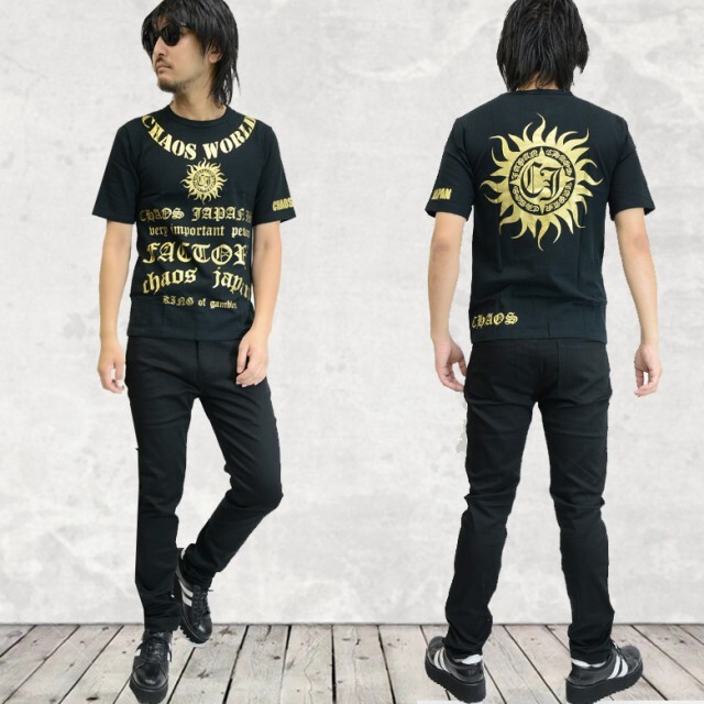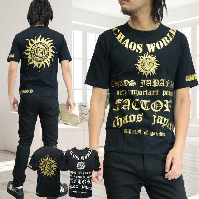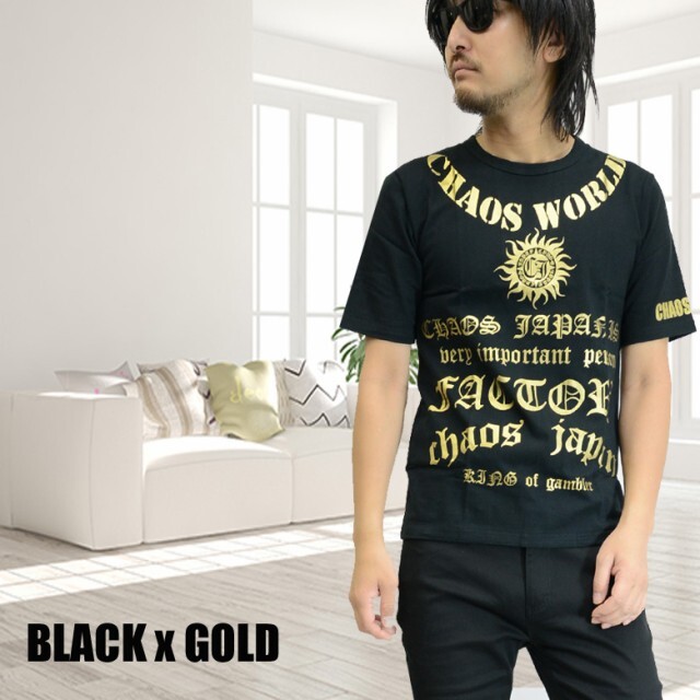 【閉店セール】サン&ブランドマークプリTシャツ オラオラ ch-ry-0009 Chaosthoery 新品 ブラックxゴールド L