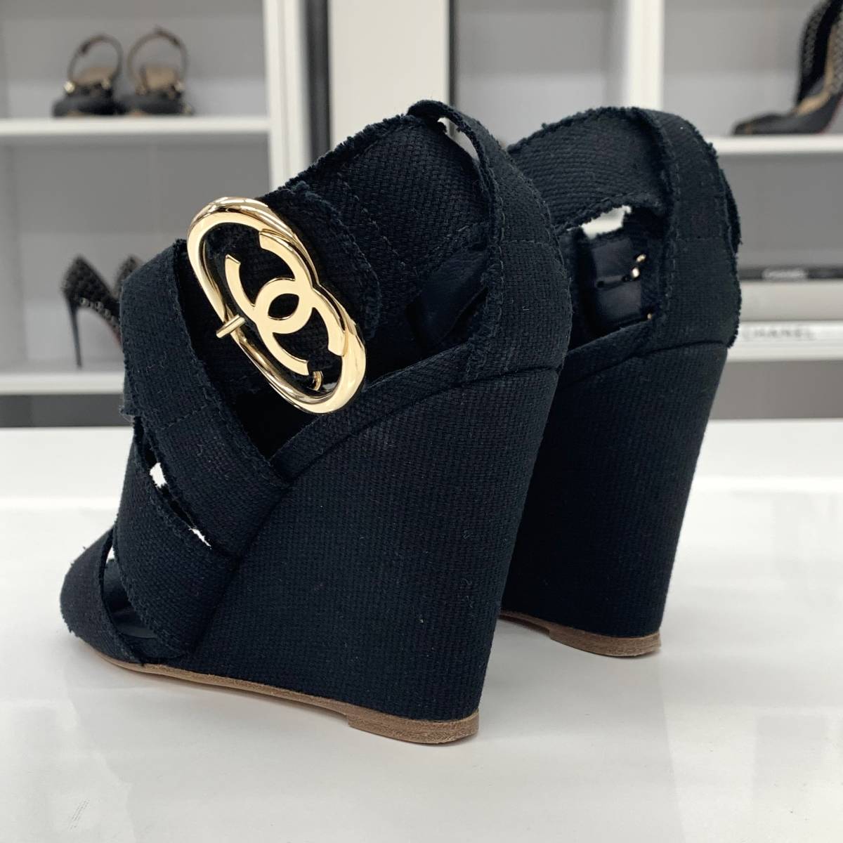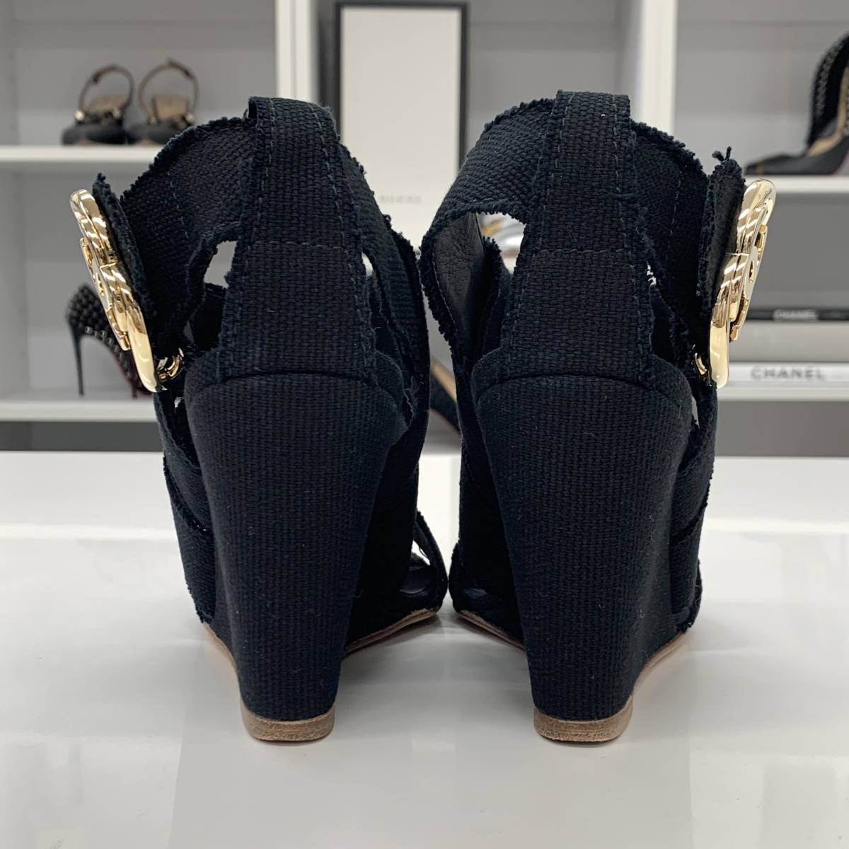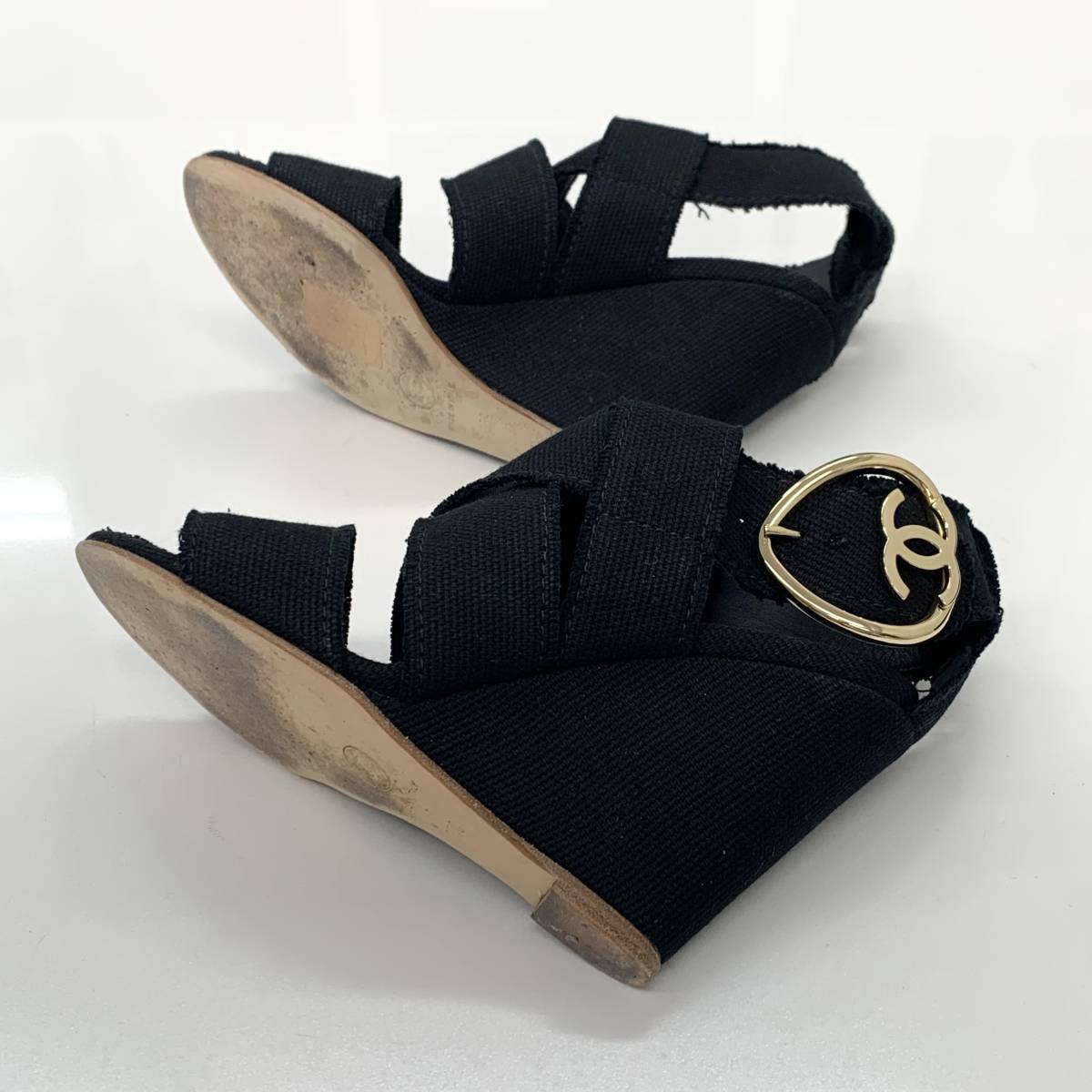 7791 シャネル キャンバス ココマーク ウェッジソール サンダル ブラック