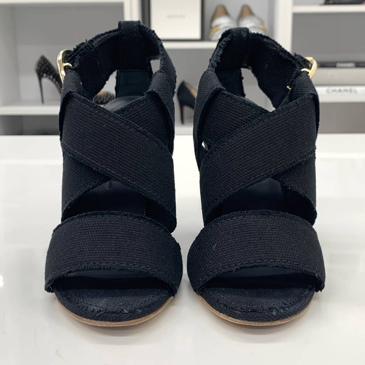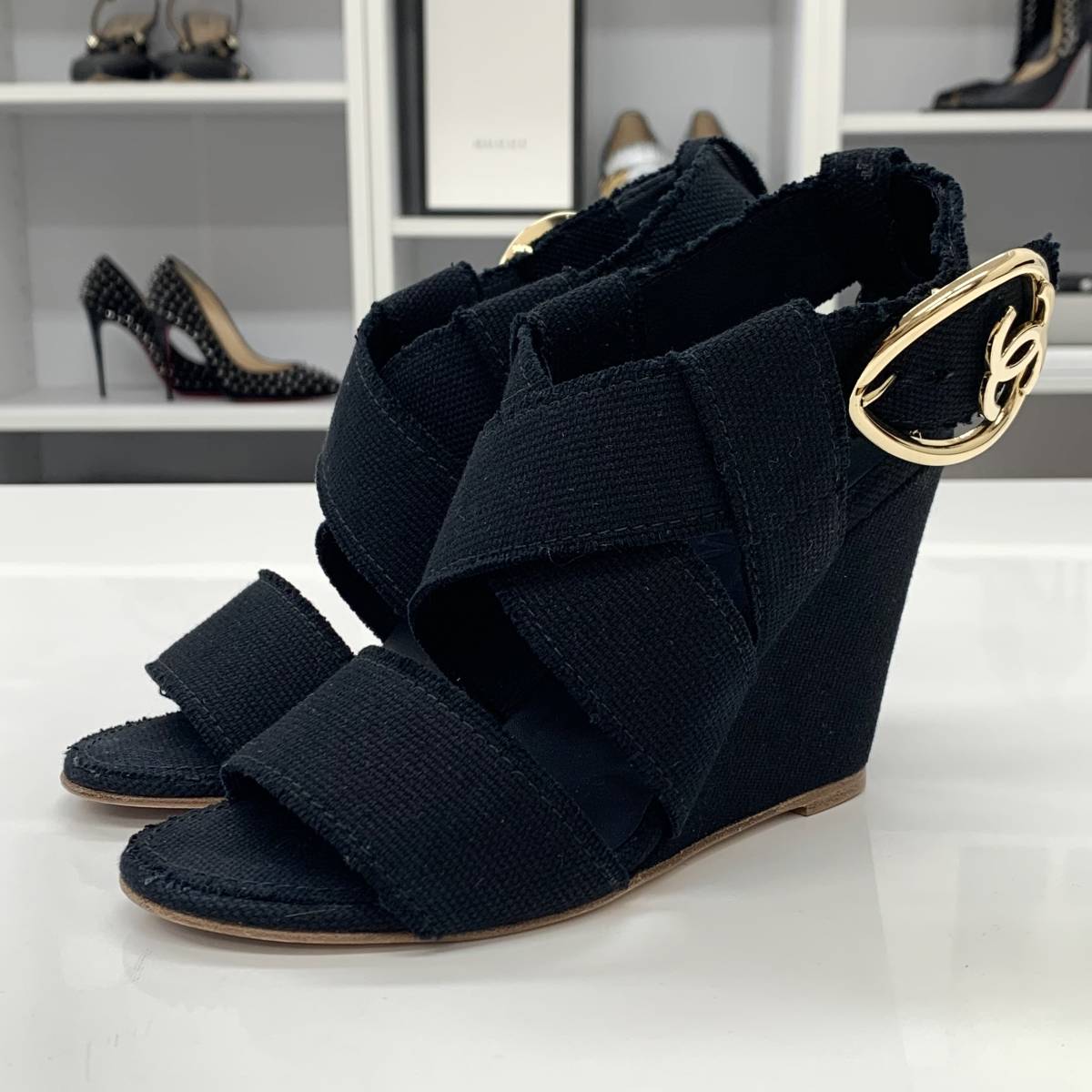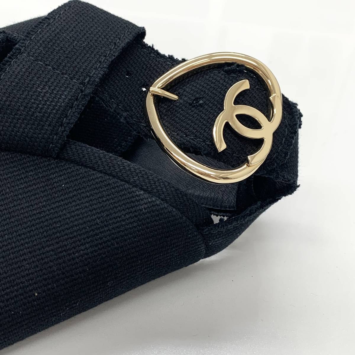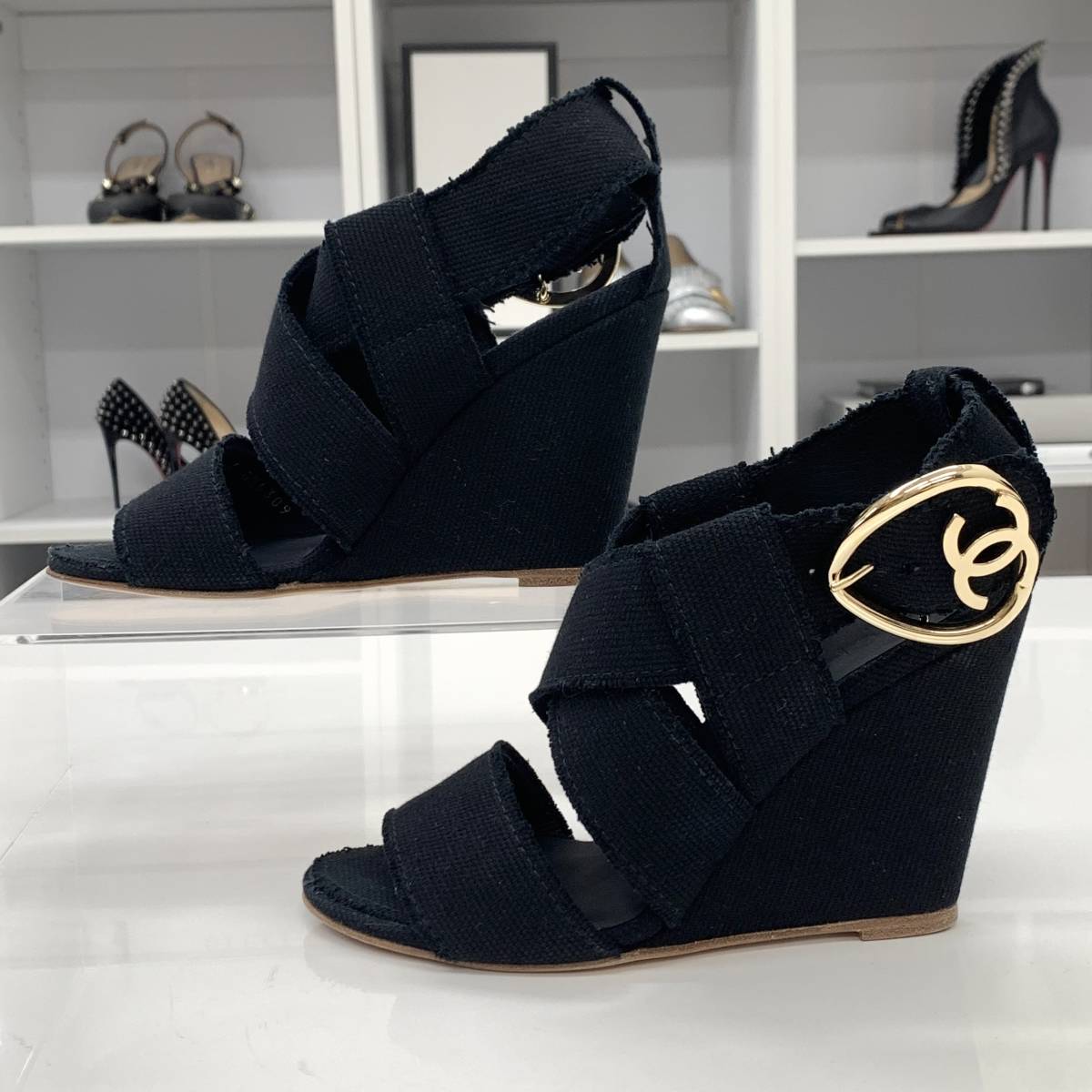 7791 シャネル キャンバス ココマーク ウェッジソール サンダル ブラック