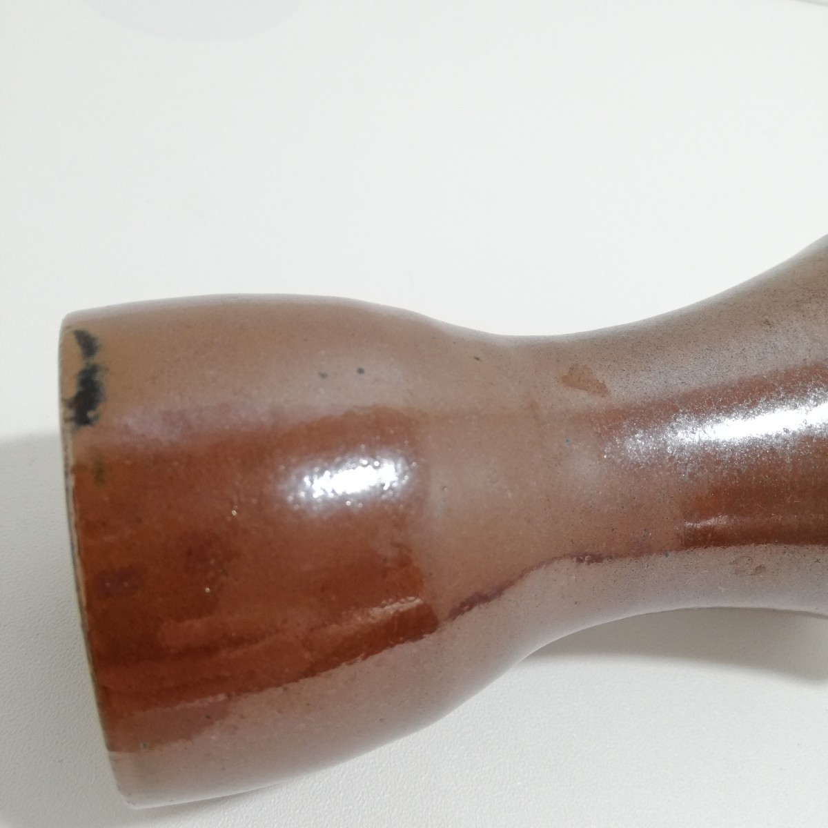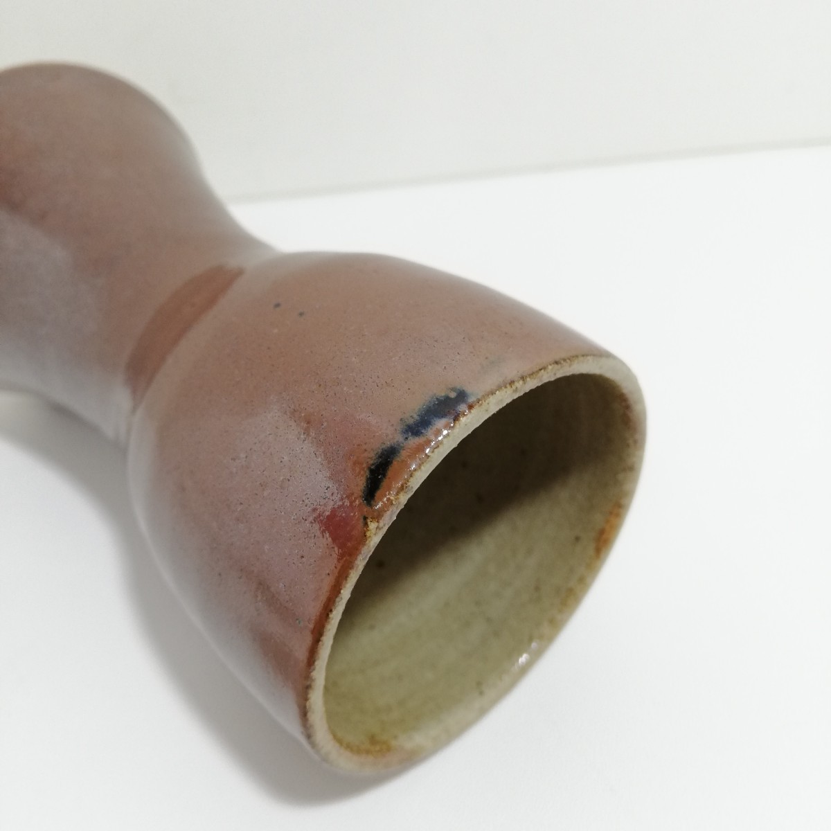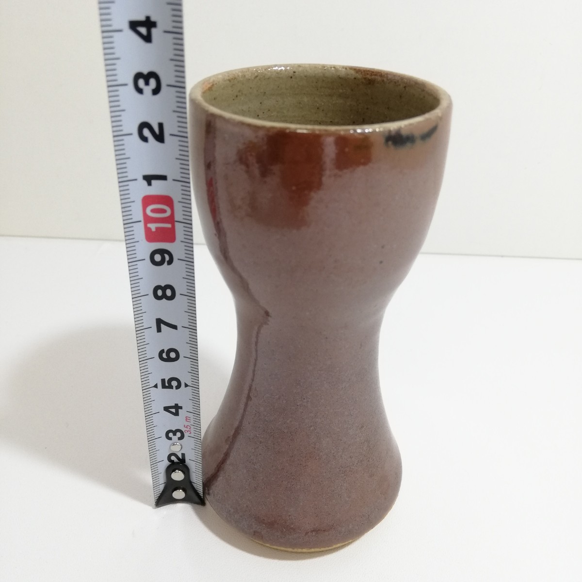 益子焼 柿釉高台猪口 高さ12.7cm 未使用品 [ぐい呑み 酒器 益子 足付猪口 馬上杯]です。